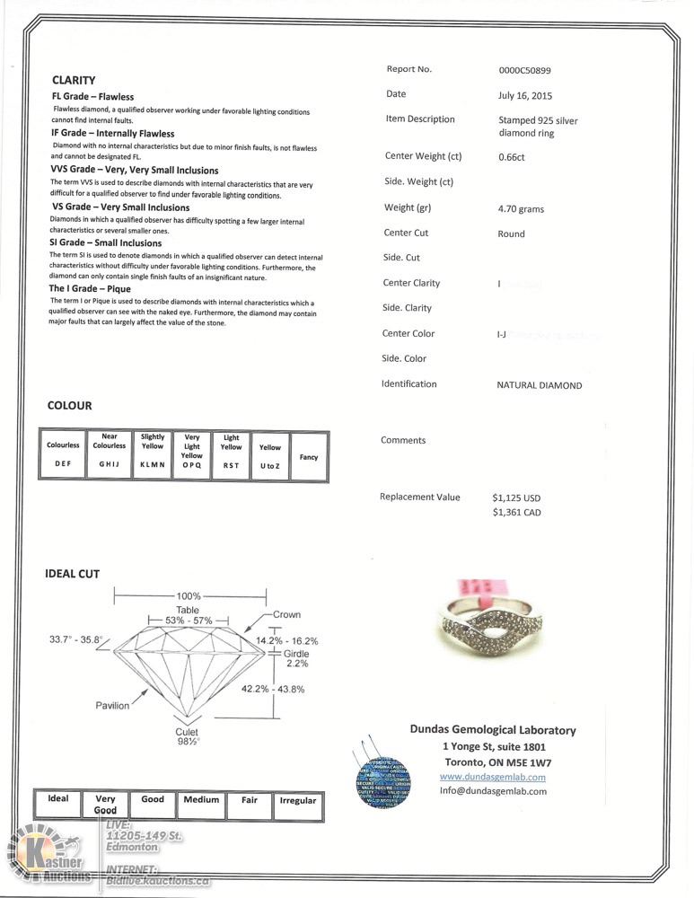 10-NT43-STERLING SILVER DIAMOND (0.66CT) RING W/COA. SUGGESTED REPLACEMENT VALUE $1361.00