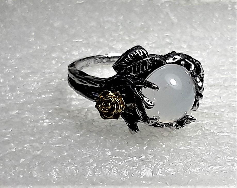 RING WITH GOLD TONE FLOWER EMBELLISHMENT, SIZE 10. JEWELRY