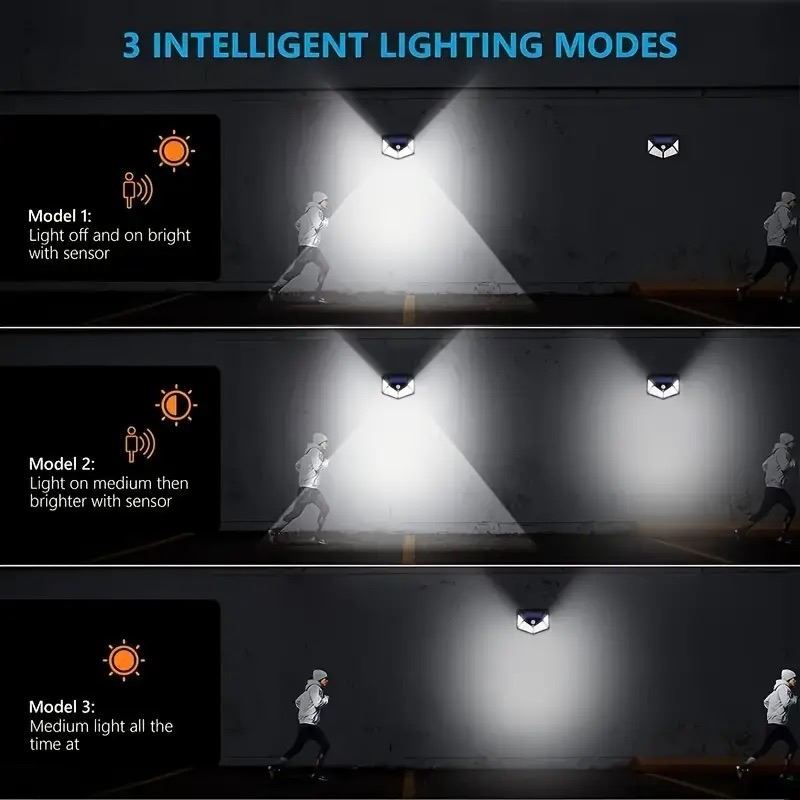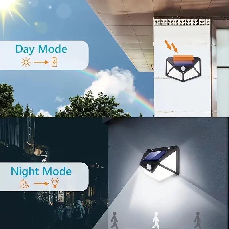100 LED WATERPROOF WALL SENSOR LAMP SOLAR CHARGING