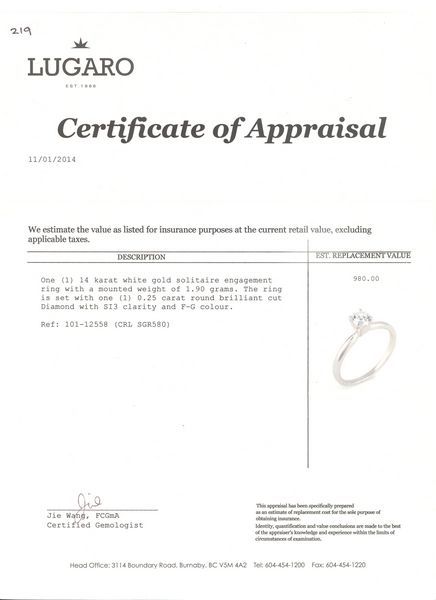 101-12558:14K WHITE GOLD DIAMOND SOLITAIRE RING