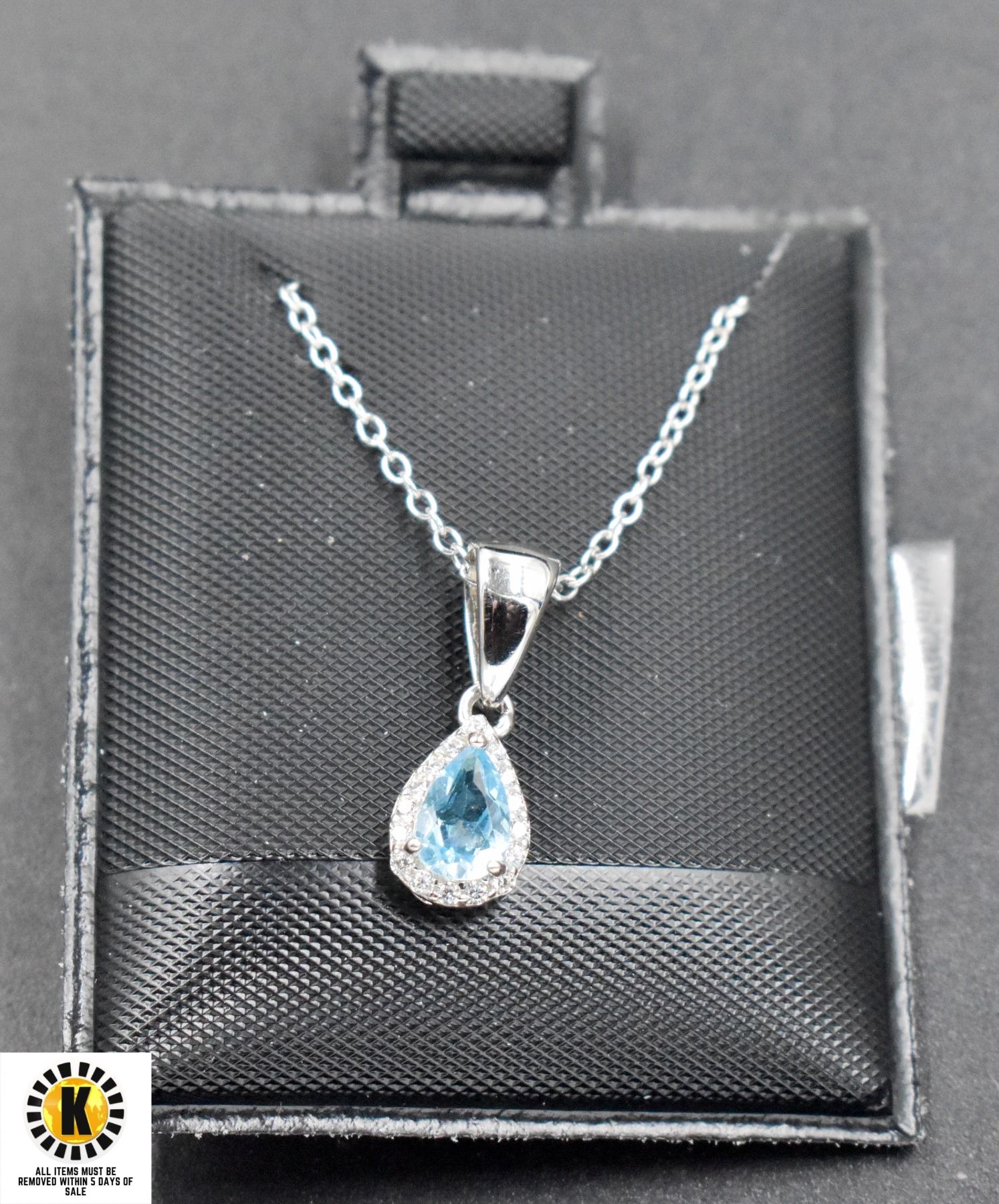 #103-NATURAL BLUE TOPAZ 4.5 X 6.5 ,CZ PENDANT