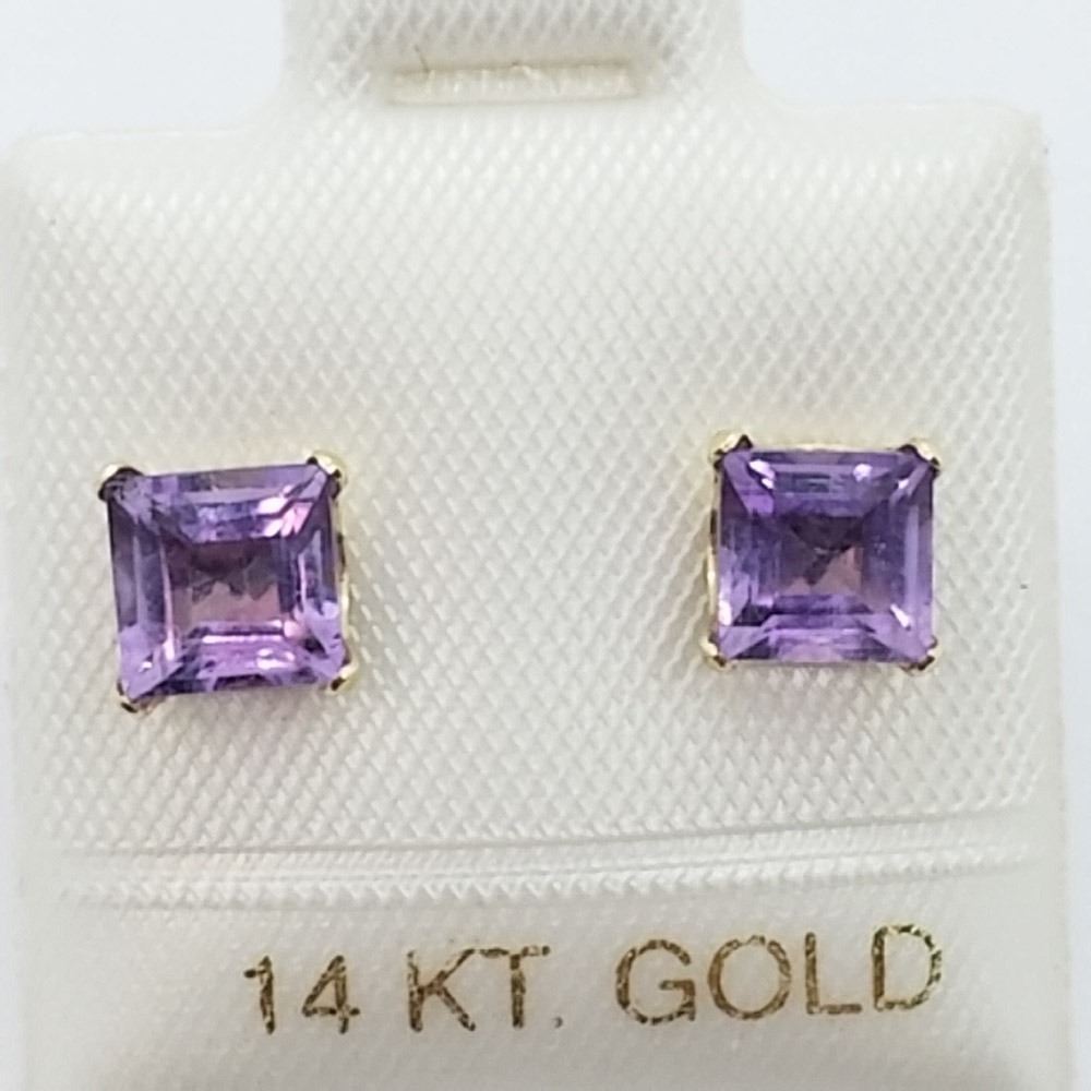 106 - JT57 - 14K YELLOW GOLD GENUINE AMETHYST EARRINGS, MADE IN CANADA. JEWELRY