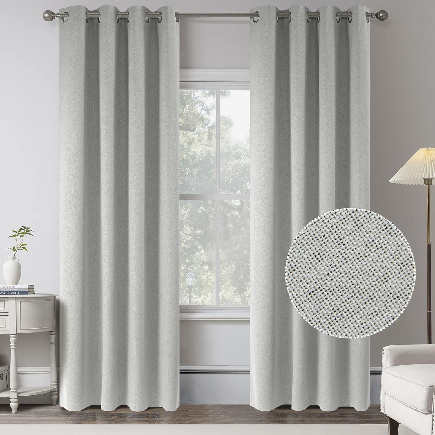 108 INCHES EXTRA LONG LINEN 100% BLACKOUT CURTAINS FOR BEDROOM - OFF WHITE ENERGY SAVING THERMAL INSULATED BURLAP TEXTURED CURTAIN DRAPES FOR COUNTRY VILLA (SET OF 2 PANELS,W 52 X L 108 INCH LENGTH)