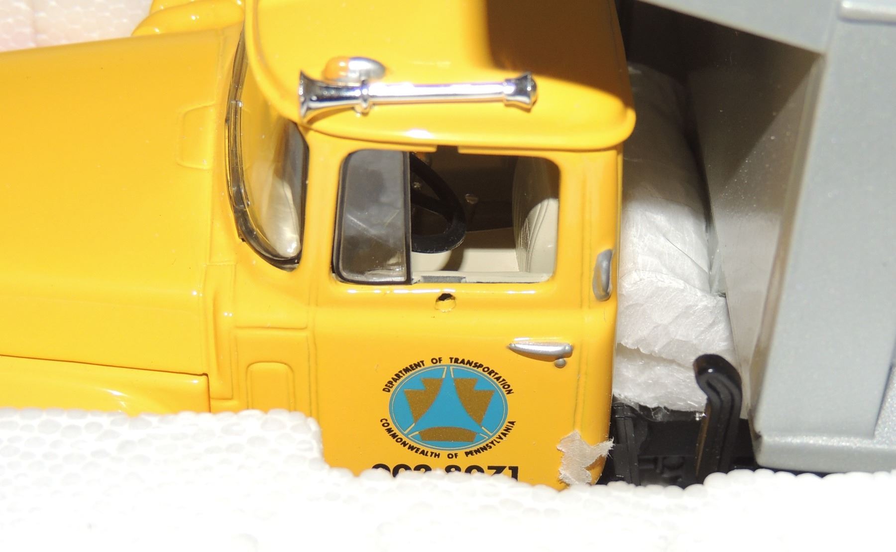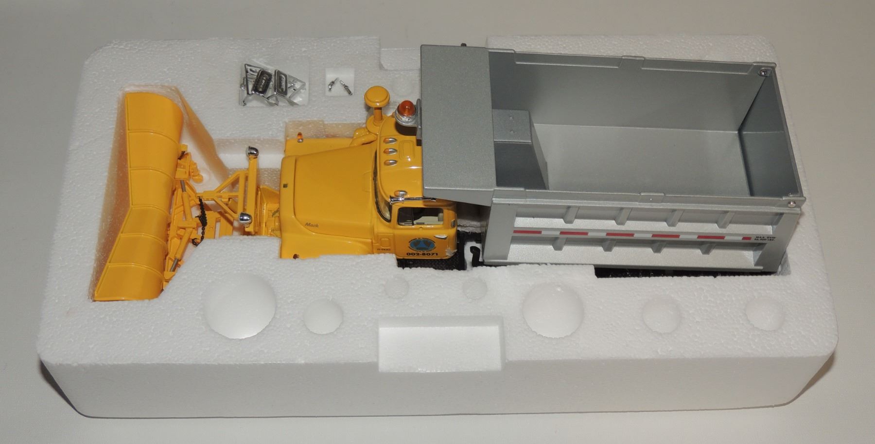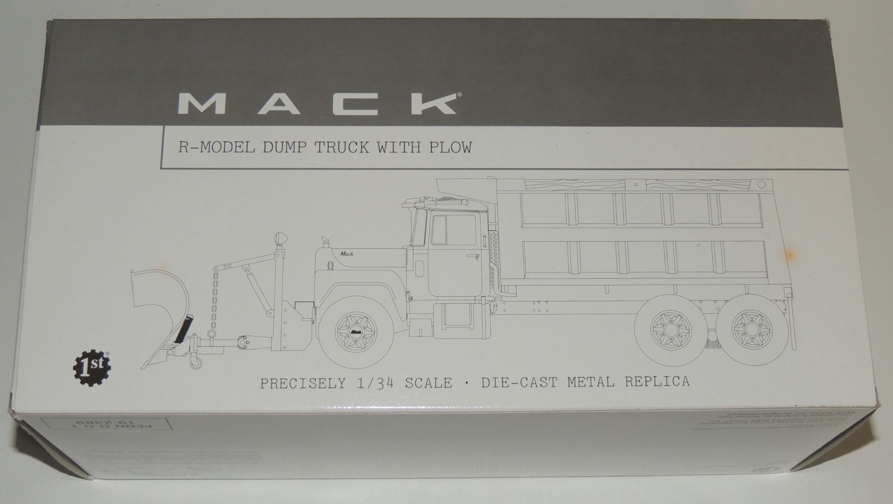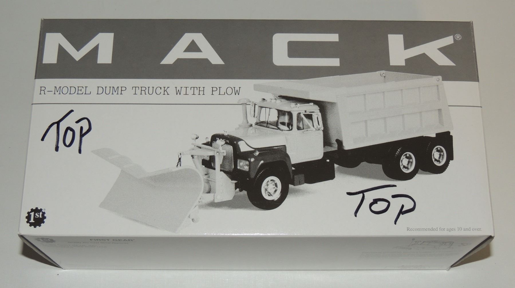 1st Gear First Gear Boxed Diecast Vehicle 1:34 Scale Diecast Die-Cast Mack L Model Dump Truck with plow 2004, Has writing on box