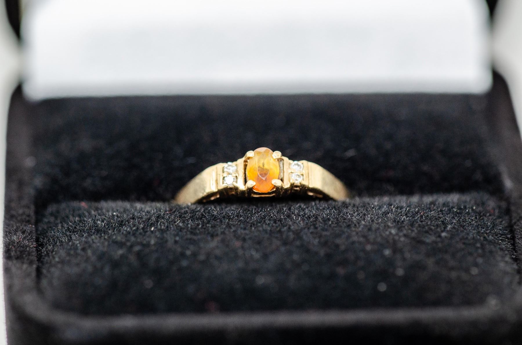 $900.00 REPLACEMENT APPRAISAL BY MGI GEMLAB (TORONTO) 10K GOLD WITH .3 CARAT ORANGE SAPPHIRE AND 4 DIAMONDS . 1.5G TOTAL WEIGHT.