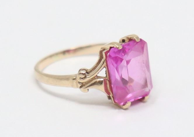 10K GOLD RING WITH PINK STONE, LORIE BRAND,