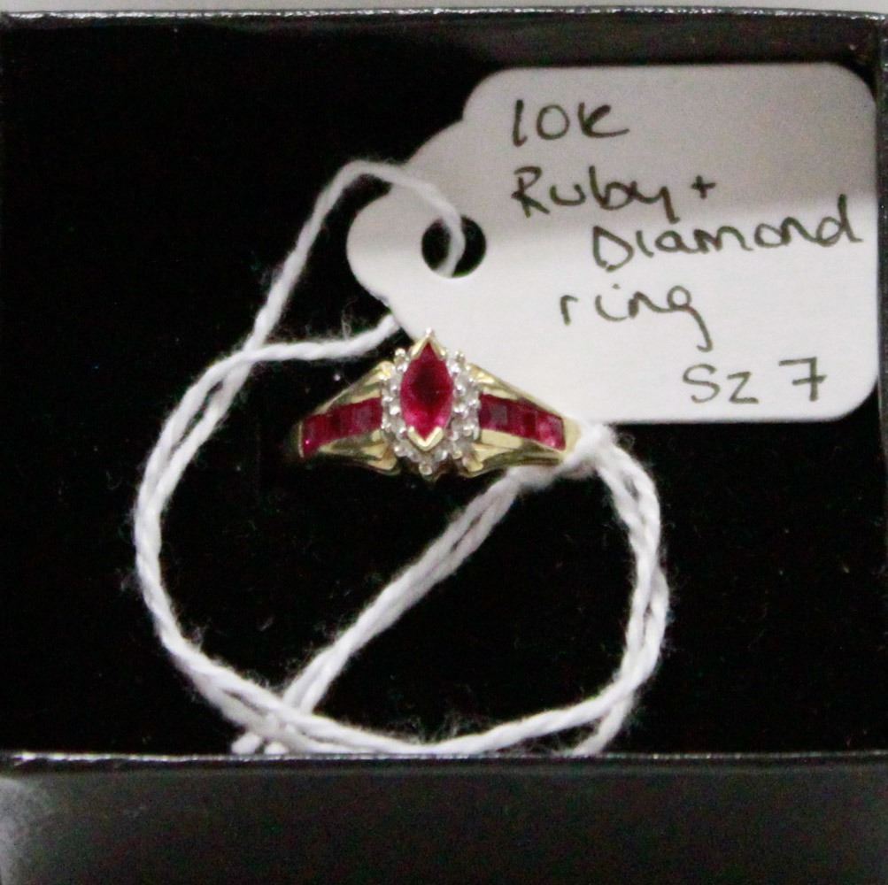 10K GOLD RUBIES AND DIAMOND RING SIZE 7