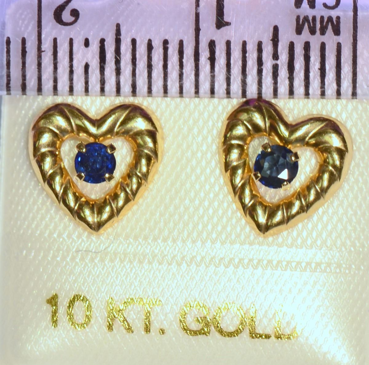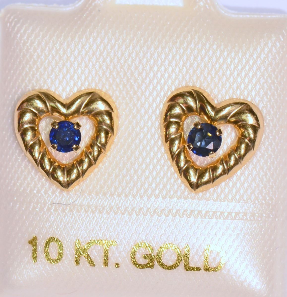 10K GOLD SAPPHIRE HEART DESIGN EARRINGS