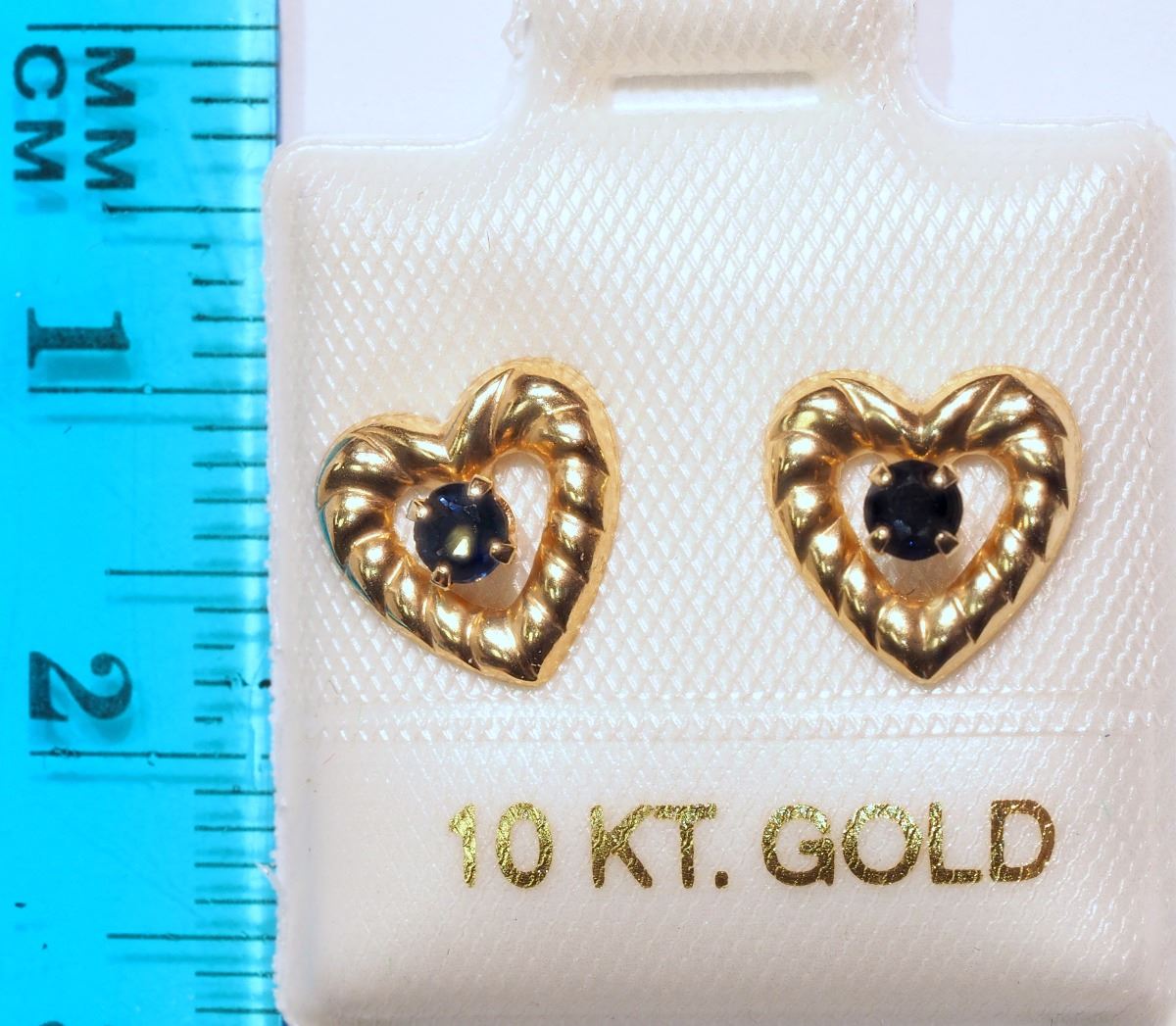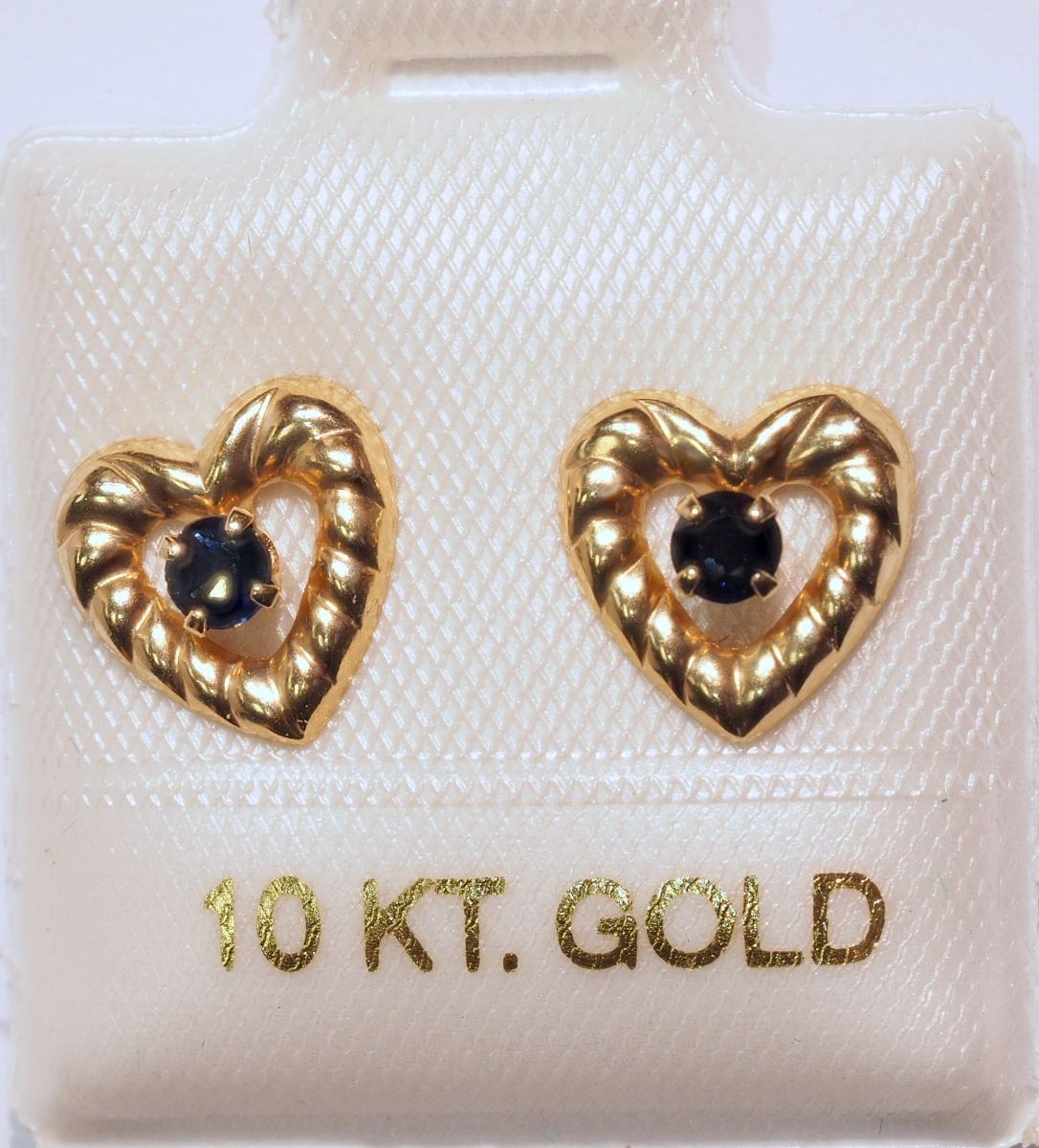 10K GOLD SAPPHIRE HEART DESIGN EARRINGS