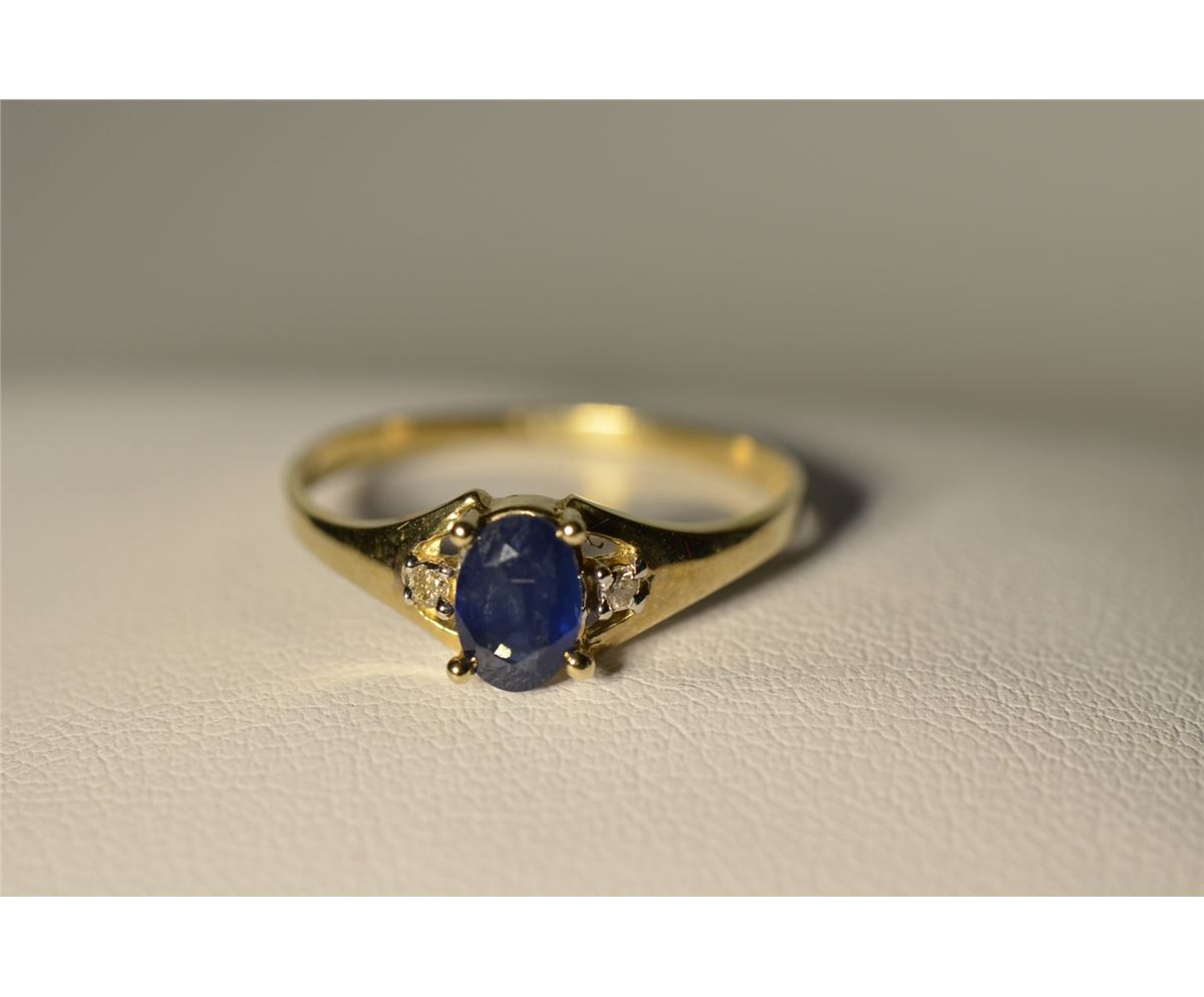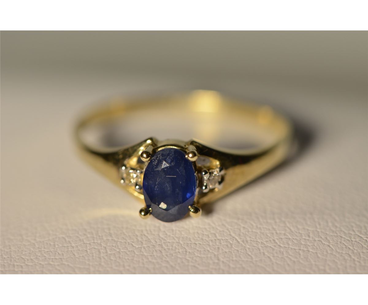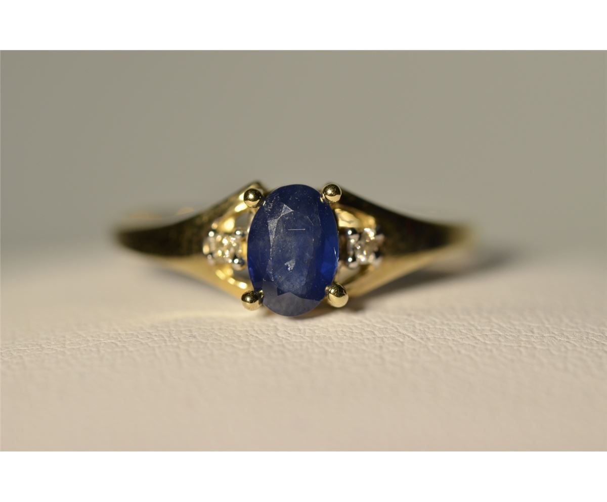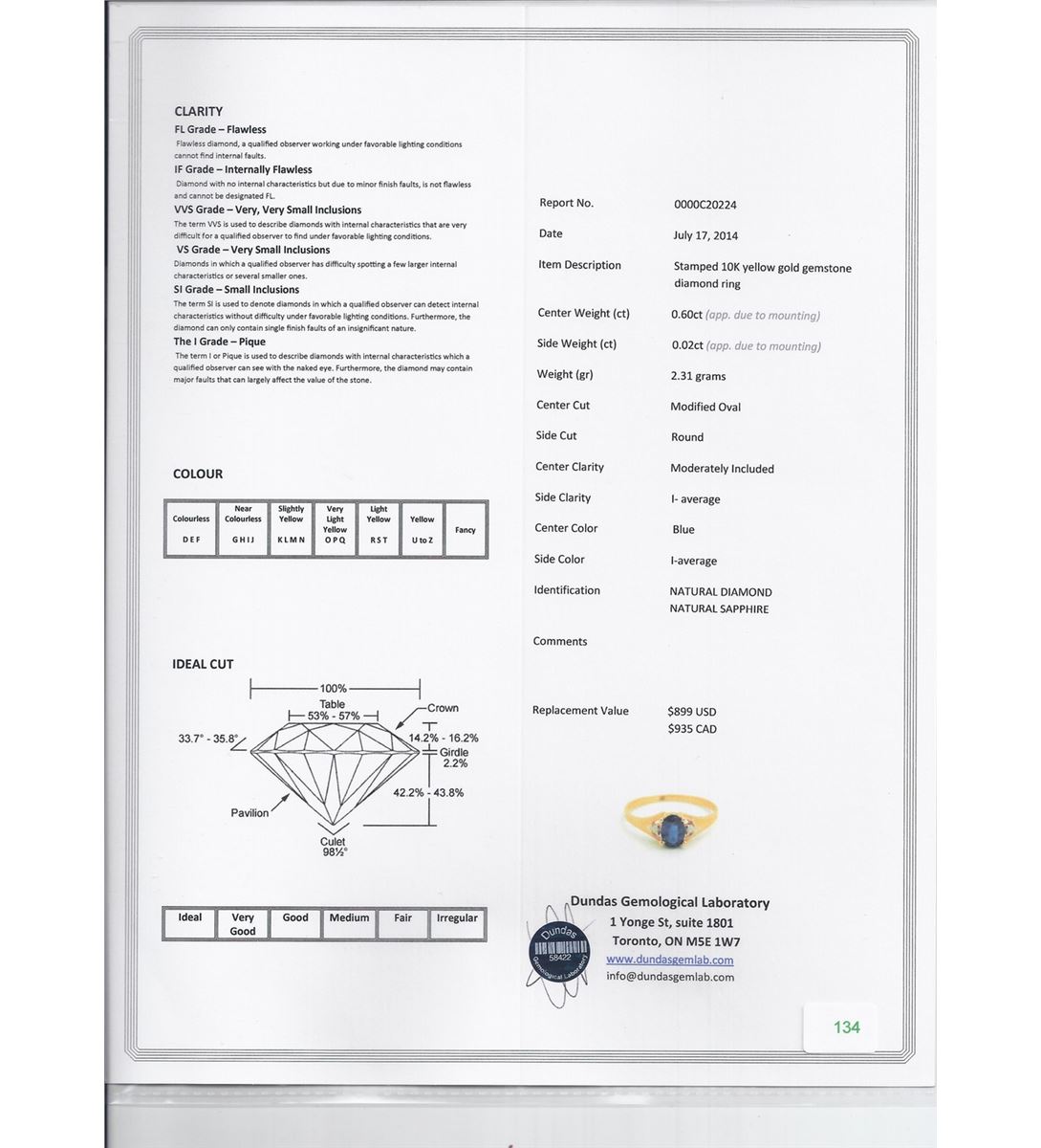 Sapphire: 0.60 cts, Oval Cut; Diamond: Round Cut; Size 5.75, with certificate