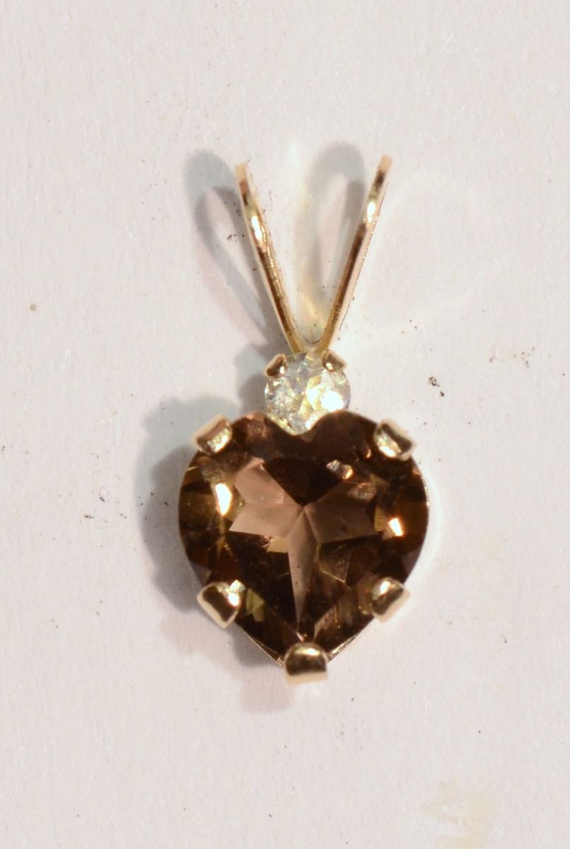 10K Gold Smokey Topaz Heart-shaped Pendant