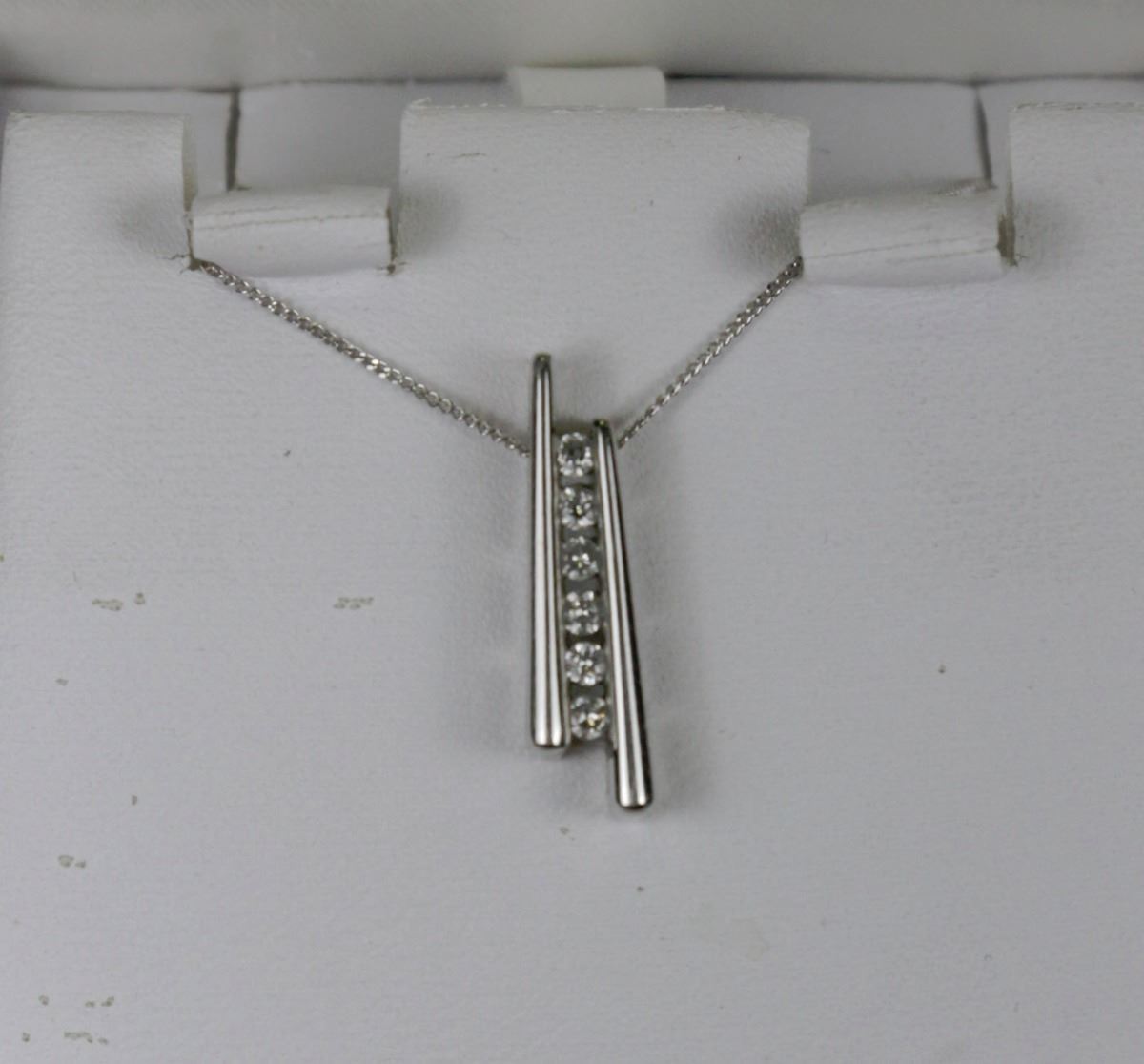 10K WHITE GOLD CHAIN WITH 6 DIAMONDS IN PENDANT