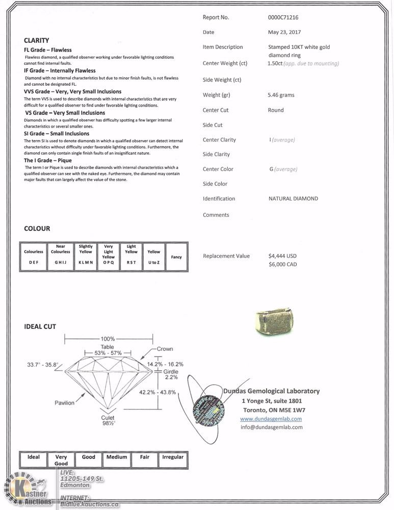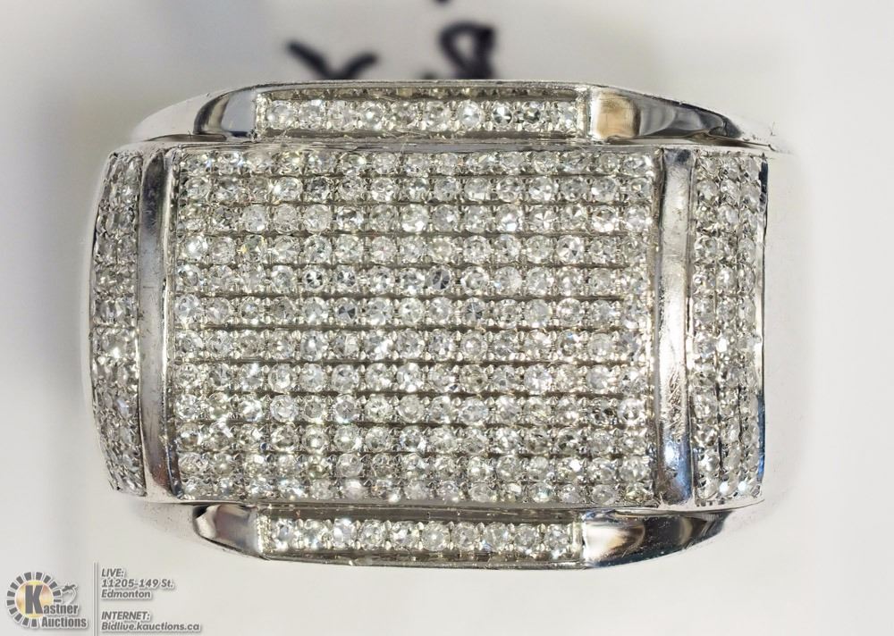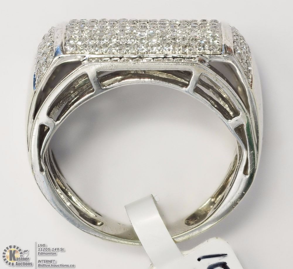 ITEM#46 - AC3: 10K WHITE GOLD DIAMOND(1.50CT) MENS HEAVY RING (APPROX. 5.46G) SIZE:7 W/ COA - SUGGESTED REPLACEMENT VALUE $6,000.00