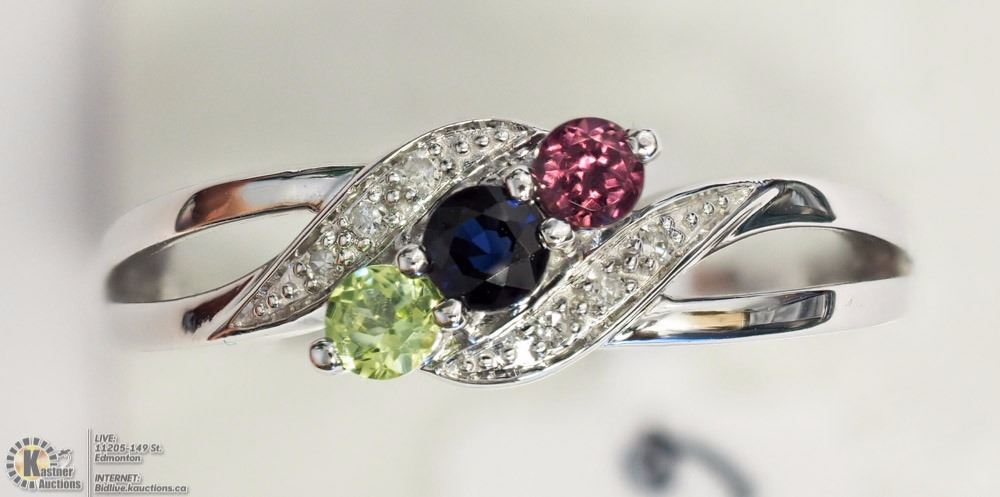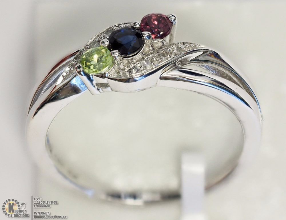 ITEM#13 - AC3: 10K WHITE GOLD GEMSTONE & DIAMOND RING SIZE:6.75 W/ COA - SUGGESTED REPLACEMENT VALUE $1,250.00