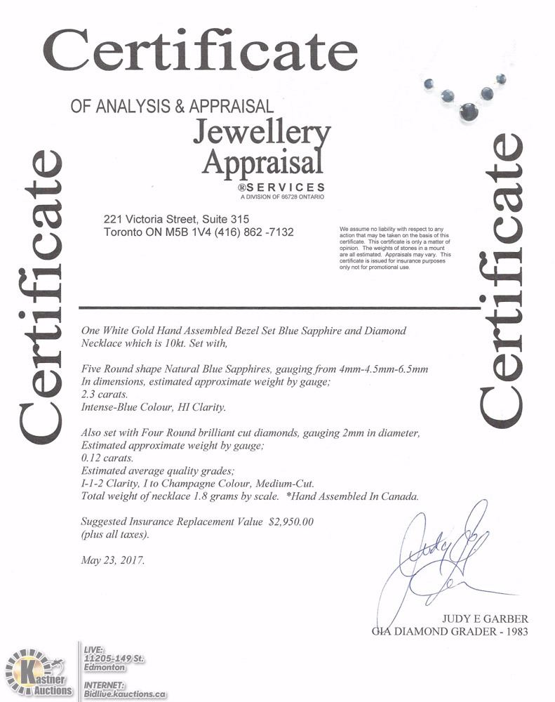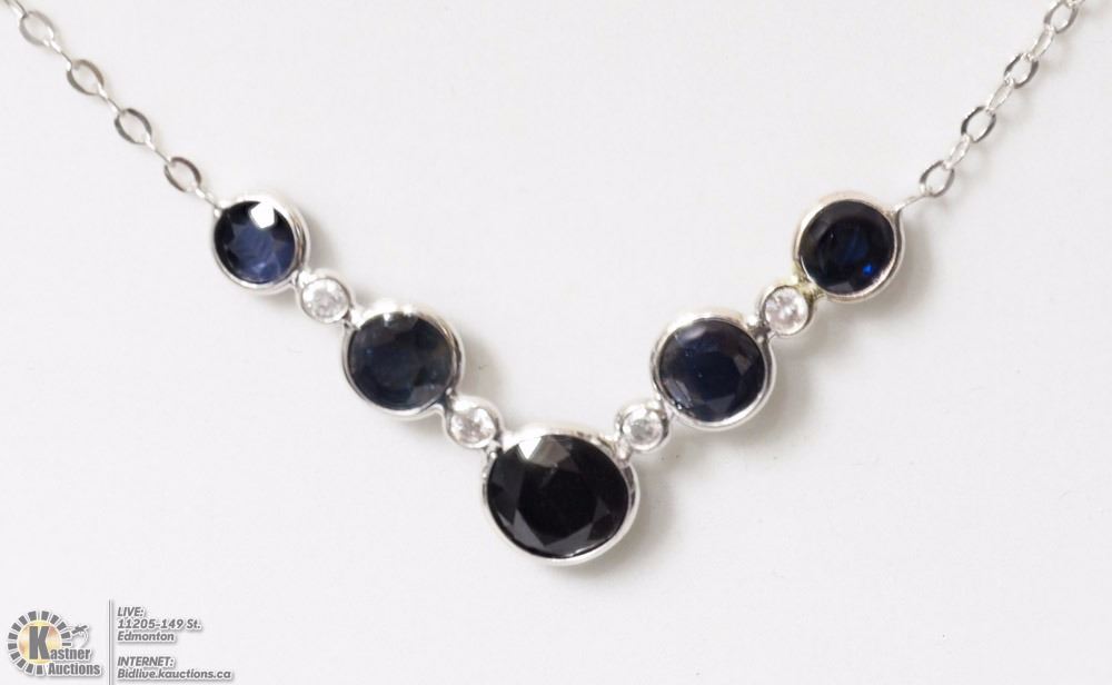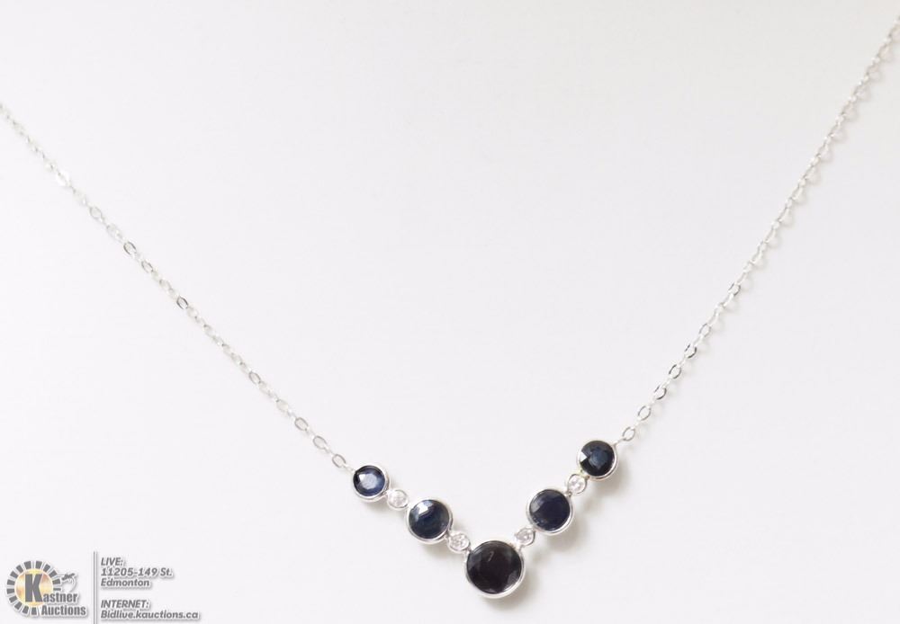 ITEM#34 - AC3: 10K WHITE GOLD SAPPHIRE(2.13CT) & DIAMOND(0.12CT) NECKLACE. W/ COA - SUGGESTED REPLACEMENT VALUE $2,950.00