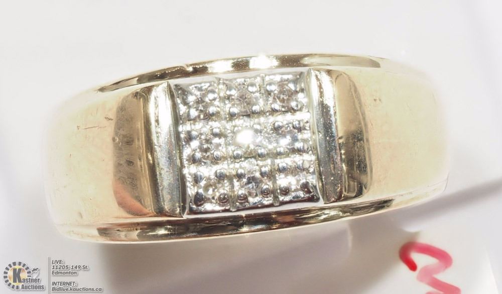 (42 - AC4: R1300) 10K YELLOW GOLD 9 DIAMOND MEN'S RING. W/ COA - SUGGESTED REPLACEMENT VALUE $1,950.00