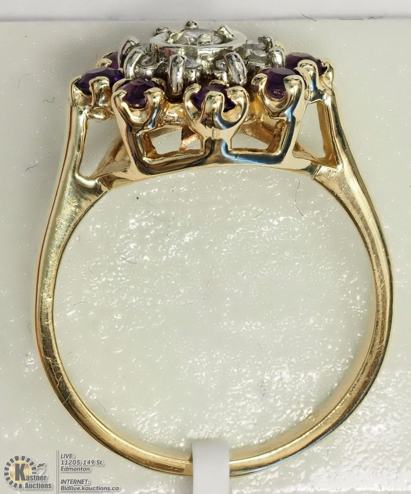 ITEM#19 - AC3: 10K YELLOW GOLD AMETHYST & DIAMOND(0.15CT) RING SIZE:6.5 W/ COA - SUGGESTED REPLACEMENT VALUE $2,025.00