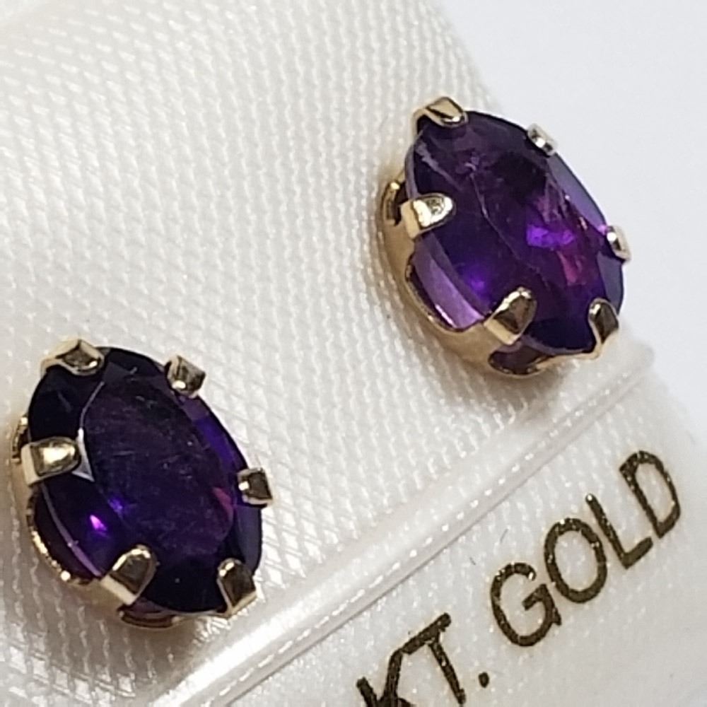 211 - JT37 - 10K YELLOW GOLD AMETHYST EARRINGS, MADE IN CANADA. JEWELRY