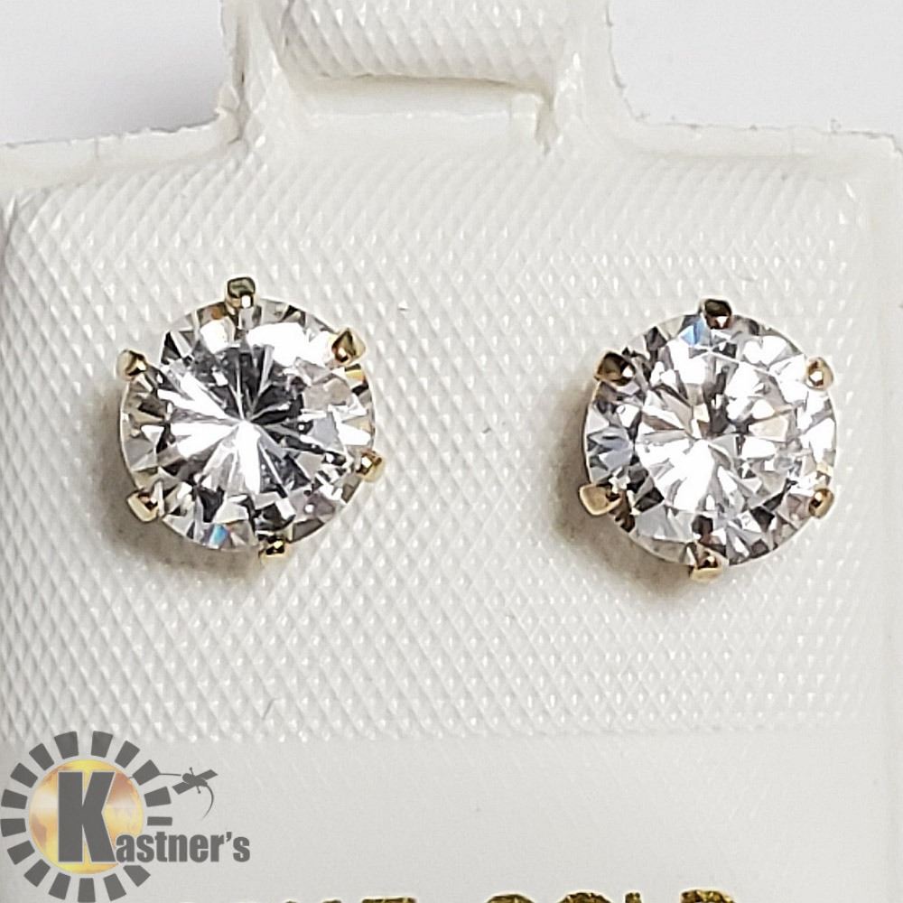 10K YELLOW GOLD CZ 6.5MM EARRINGS, MADE IN CANADA
