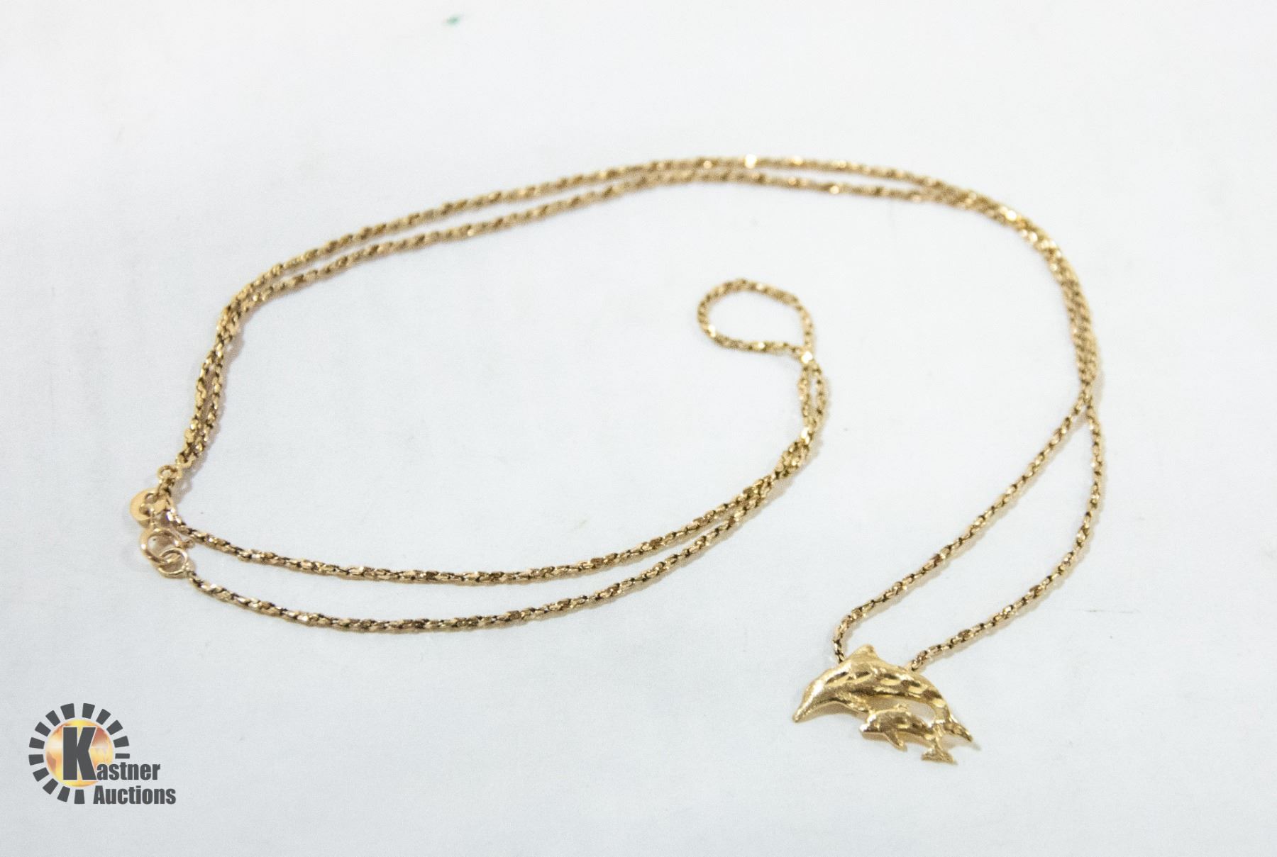 DOLPHIN PENDANT 26" LONG 5.3 GRAMS TOTAL **ALL ITEMS MUST BE REMOVED BY 5PM SATURDAY, NOVEMBER 4TH 2023. ALL REMAINING ITEMS WILL BE SUBJECT TO A $6.00 PER DAY STORAGE CHARGE. ANY ITEMS REMAINING AFTER MONDAY, NOVEMBER 18TH, 2023 WILL BE CONSIDERED FORFEITED. NO REFUNDS WILL BE ISSUED FOR FORFEITED ITEMS. TO SCHEDULE A PICK UP APPOINTMENT CLICK HERE