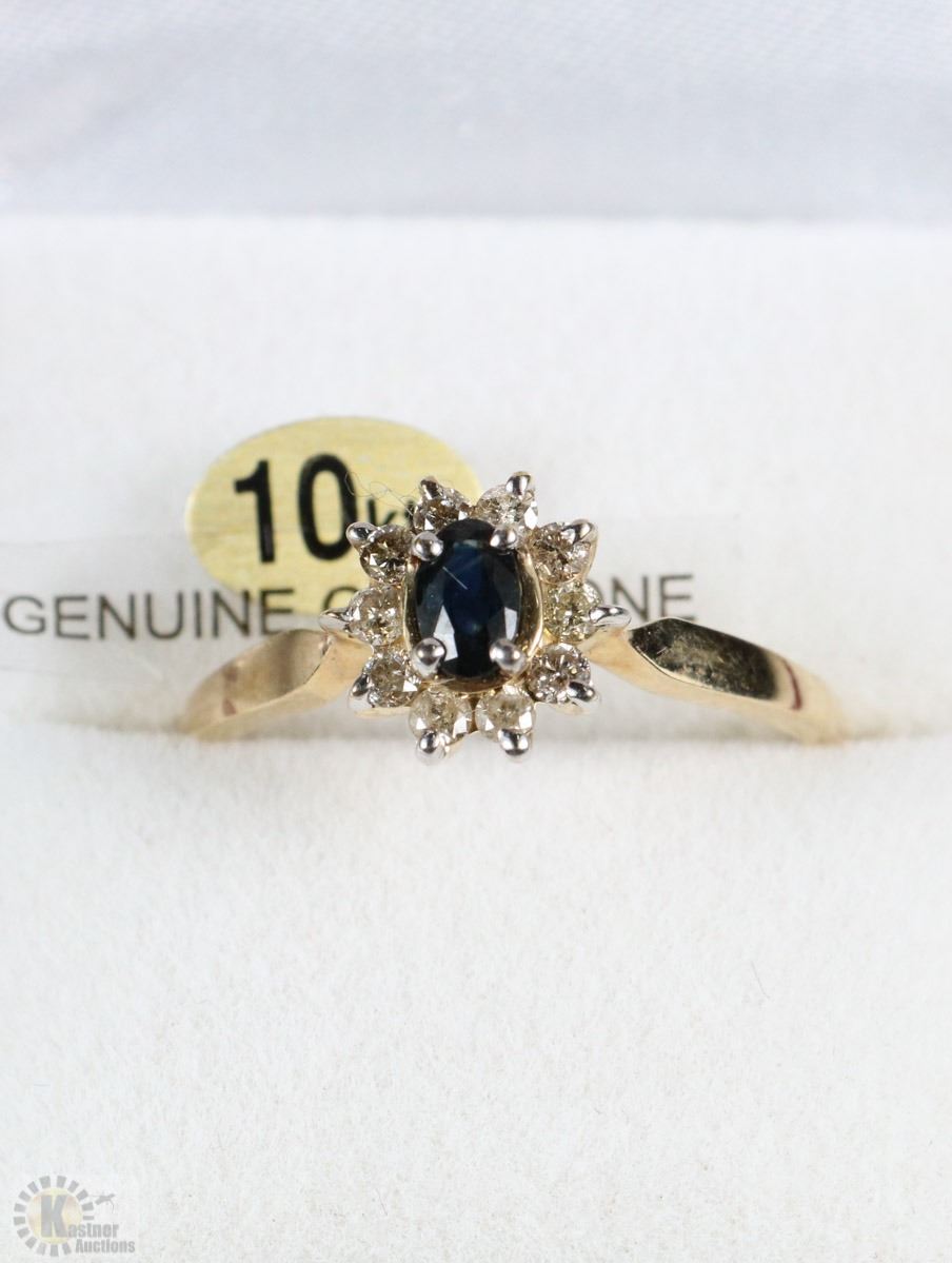 10KT YELLOW GOLD DIAMOND AND SAPPHIRE RING W/COA