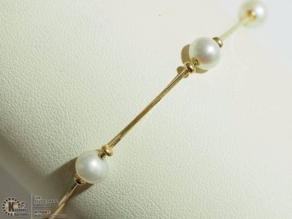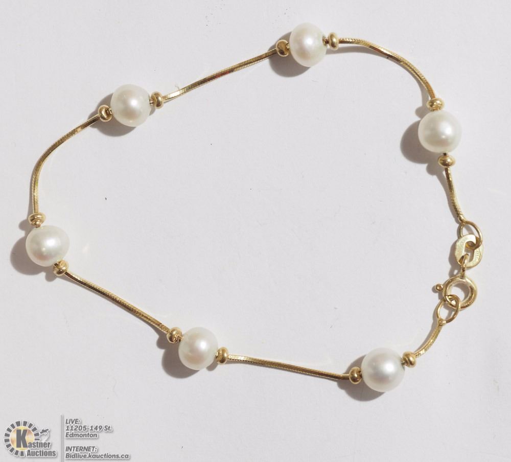 25 - BA10; 10KT YELLOW GOLD FRESHWATER PEARL BRACELET W/ COA - SUGGESTED REPLACEMENT VALUE $1,200.00