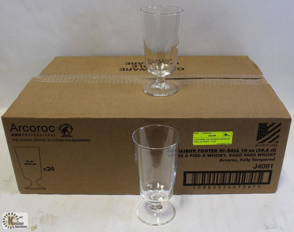 KW156 - NEW 10OZ/300ML EXCALIBUR FOOTED HI BALL GLASSES - LOT OF 24 (1 CASE), ARCOROC J4091