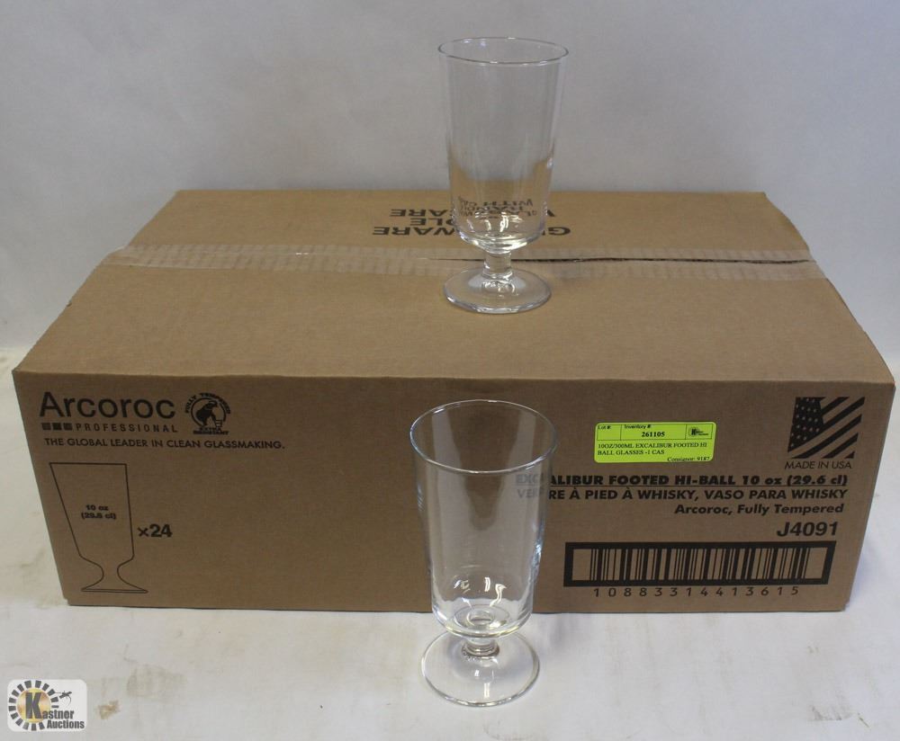 KW155 - NEW 10OZ/300ML EXCALIBUR FOOTED HI BALL GLASSES - LOT OF 24 (1 CASE), ARCOROC J4091