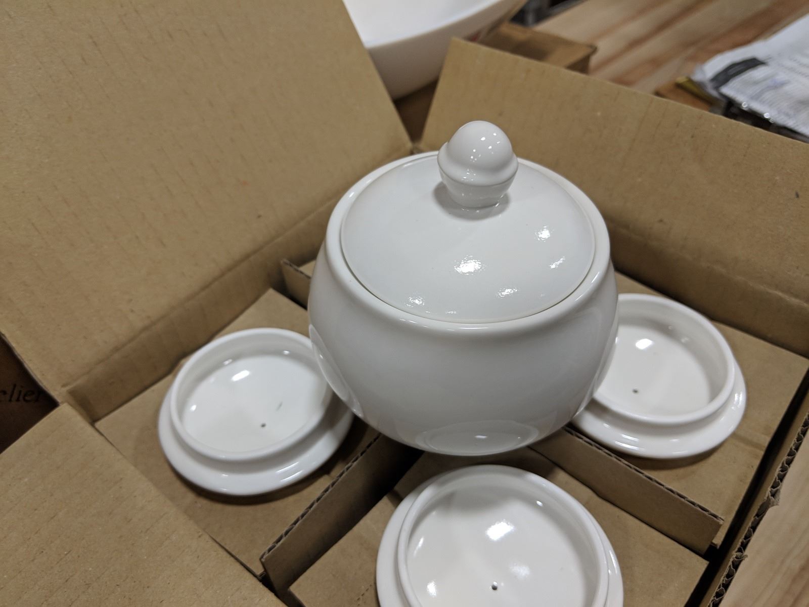 K264 NEW 10OZ/295ML WHITE PORCELAIN COVERED SUGAR BOWLS, ARCOROC "EMBASSY" S0116 - LOT OF 4