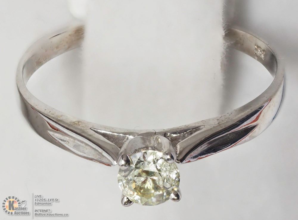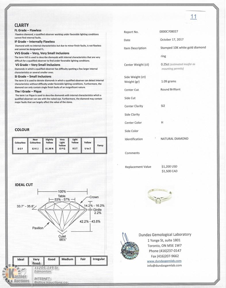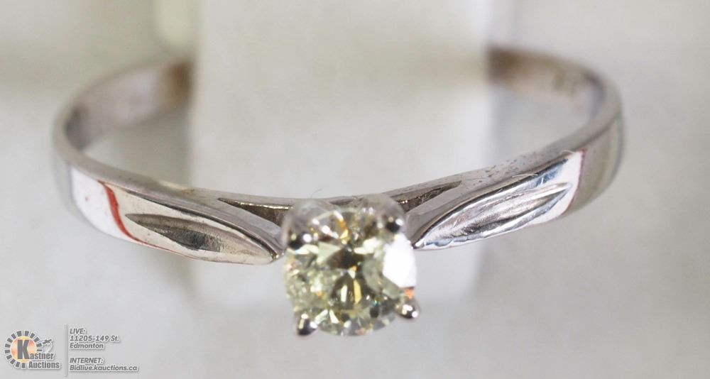 11 - SG05(D)- 10K WHITE GOLD DIAMOND RING SIZE 5.5, (ROUND BRILLIANT CUT) W/COA. SUGGESTED REPLACEMENT VALUE $1500.00. JEWELLERY