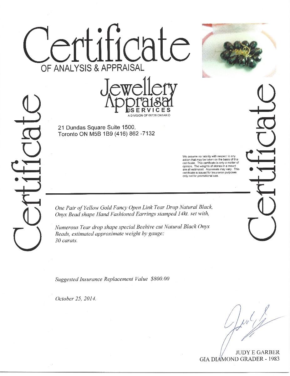 BLACK, ONYX BEADS EARRINGS. W/COA -SUGGESTED REPLACEMENT VALUE $800.00