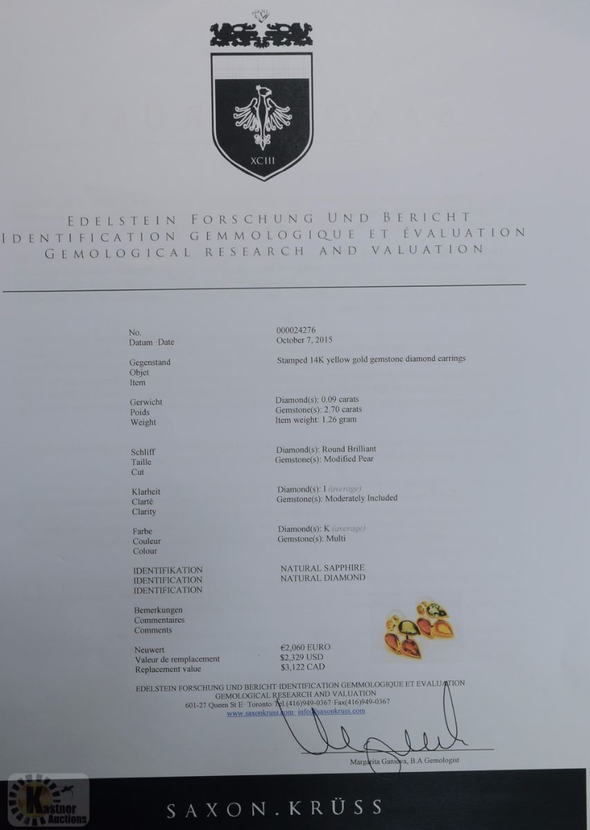 W/ COA - SUGGESTED REPLACEMENT VALUE $3,122.00