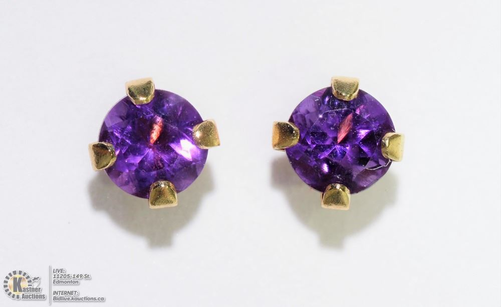 LS14 - 11- 14KT GOLD GENUINE AMETHYST SCREW BACK EARRINGS