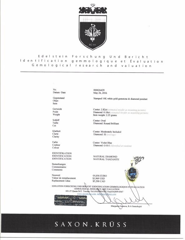 W/ COA -SUGGESTED REPLACEMENT VALUE $5,200.00