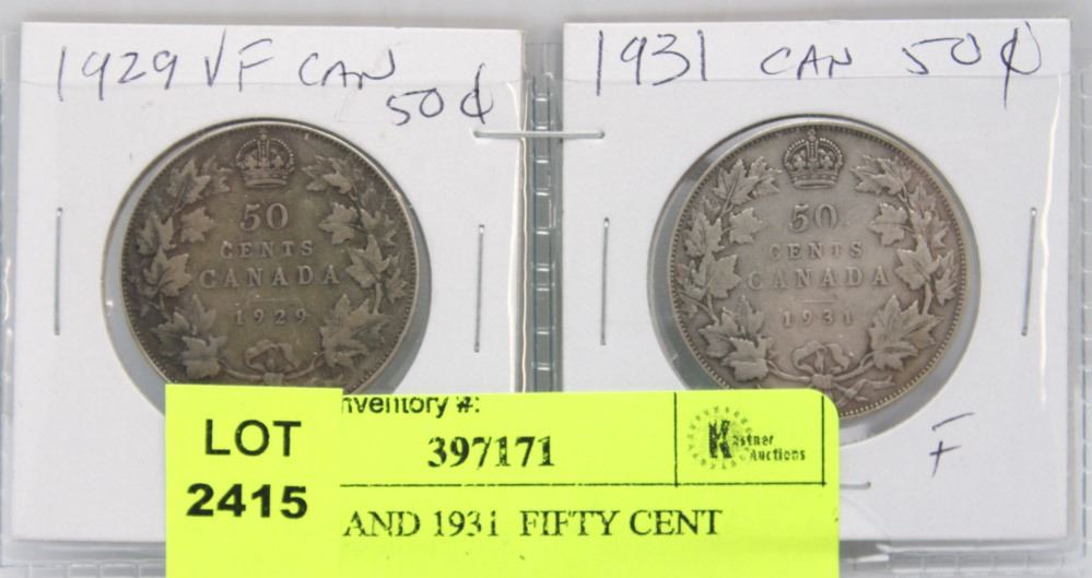 #11) 1929 AND 1931 FIFTY CENT COINS