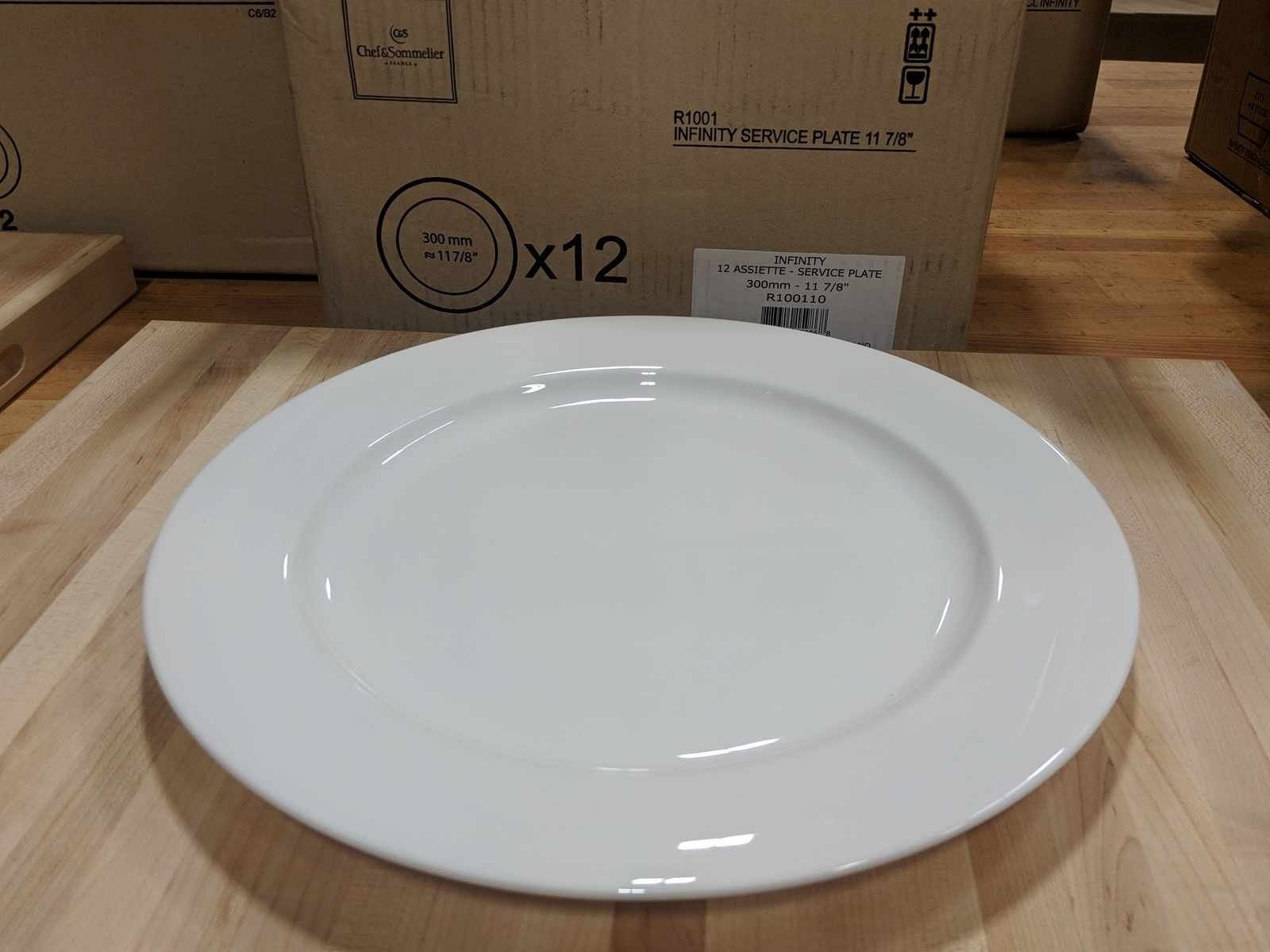 11-7/8 WHITE PORCELAIN PLATES, INFINITY-LOT OF 12