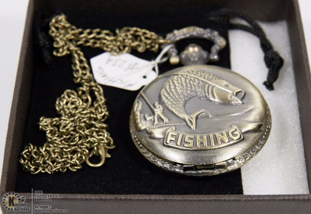 11)BRONZE POCKET WATCH WITH CHAIN (FISH FACE )