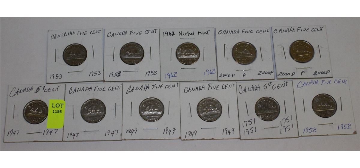 11 CANADA NICKELS-1947X2,49X2,51,52,53,58,62,&