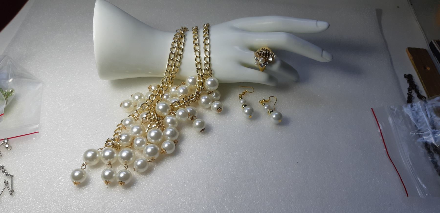 NECKLACE, WITH MATCHING DROP EARRINGS AND SIZE 9 RING. JEWELRY