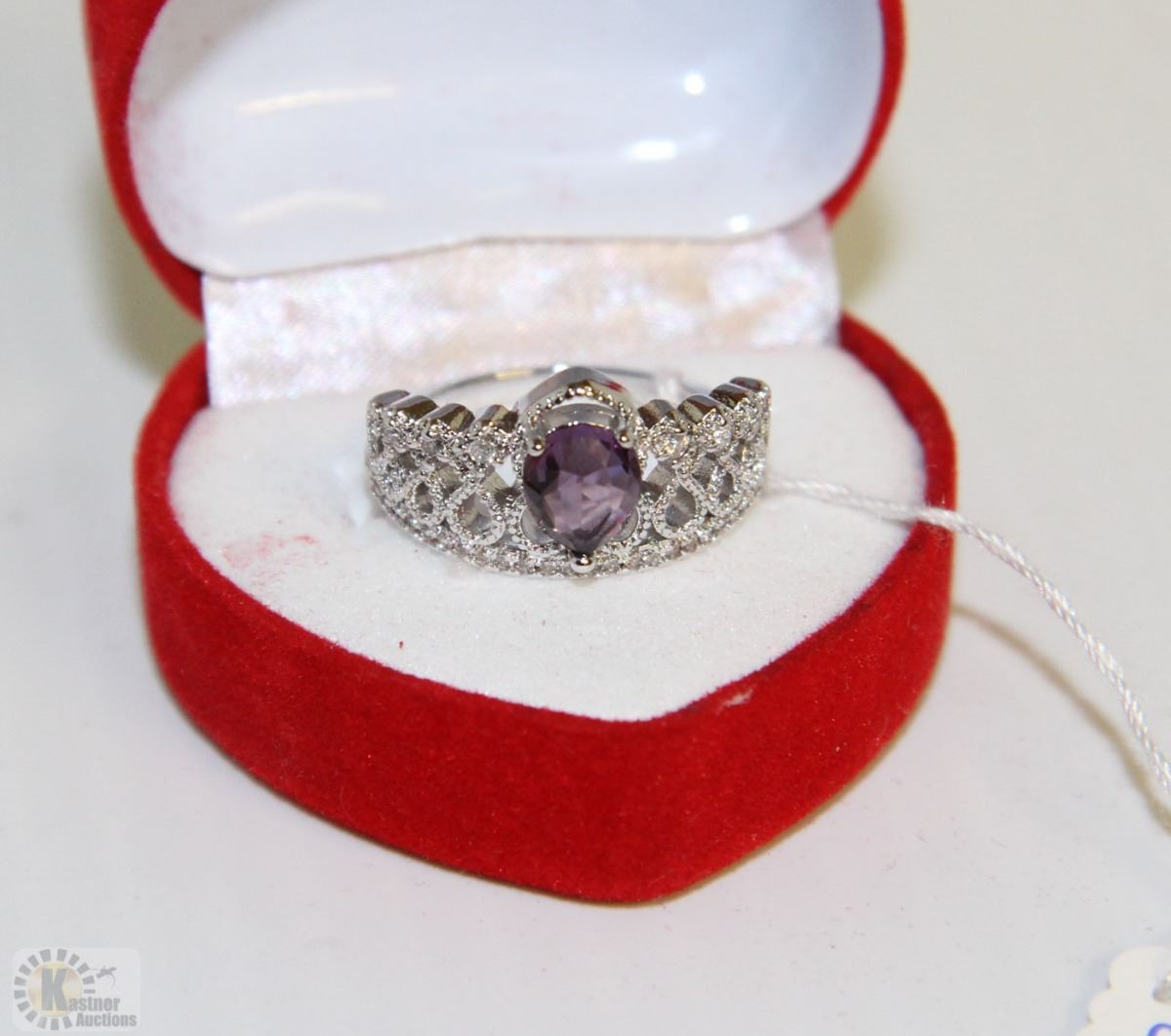 #11)NATURAL AMETHYST & CZ .925 SILVER RING SIZE 7