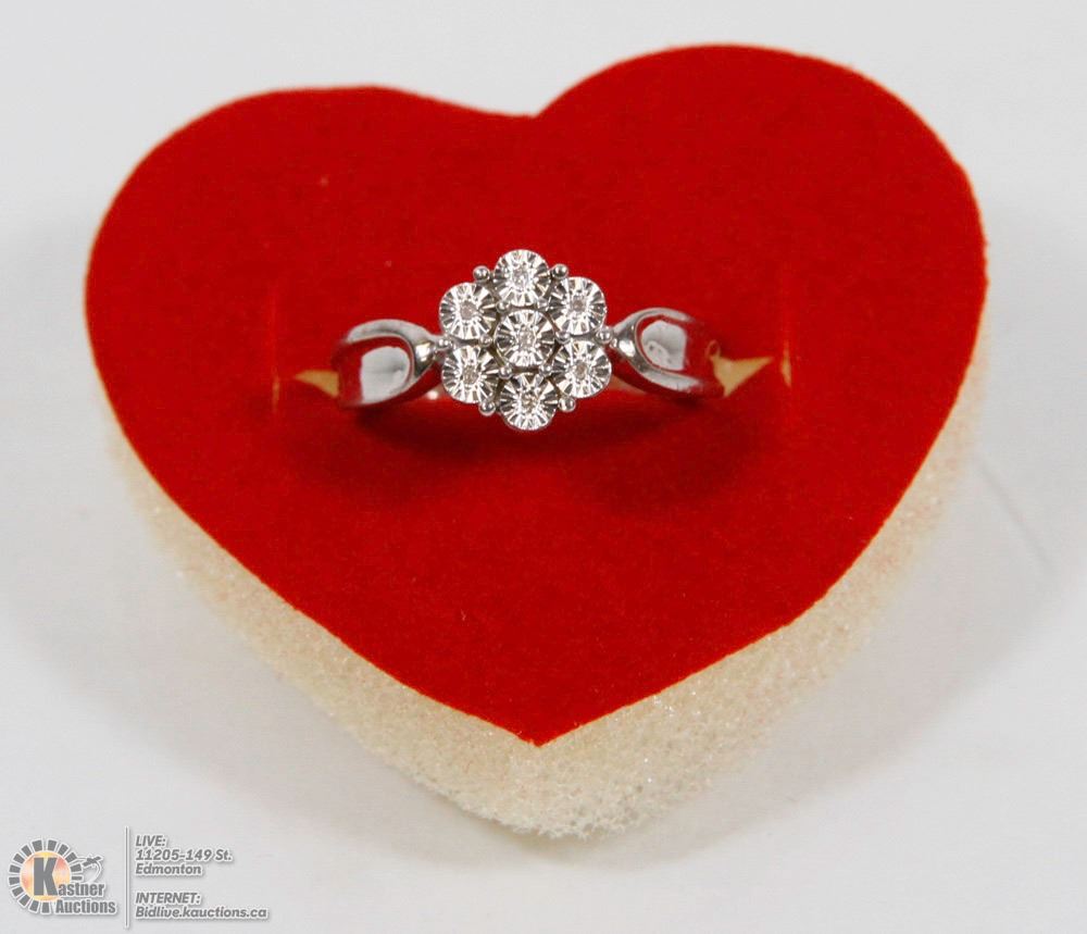11-LS13- STERLING SILVER RING WITH 7 DIAMONDS IN ILLUSION SETTING SIZE 7.25. JEWELRY.