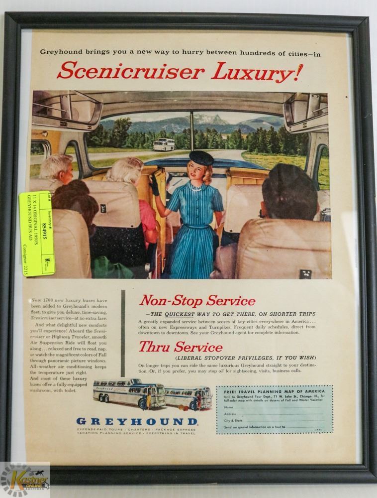 11 X 14 ORIGINAL 1950'S GREYHOUND BUS AD