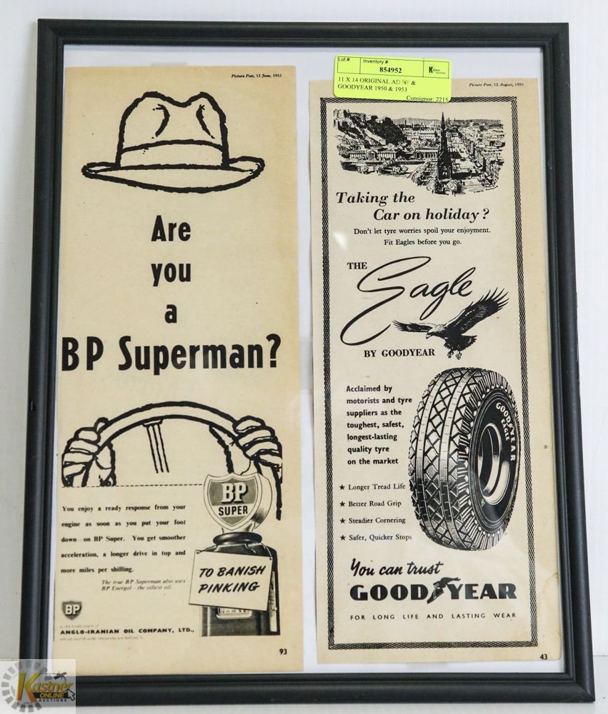 11 X 14 ORIGINAL AD BP & GOODYEAR 1950 & 1953