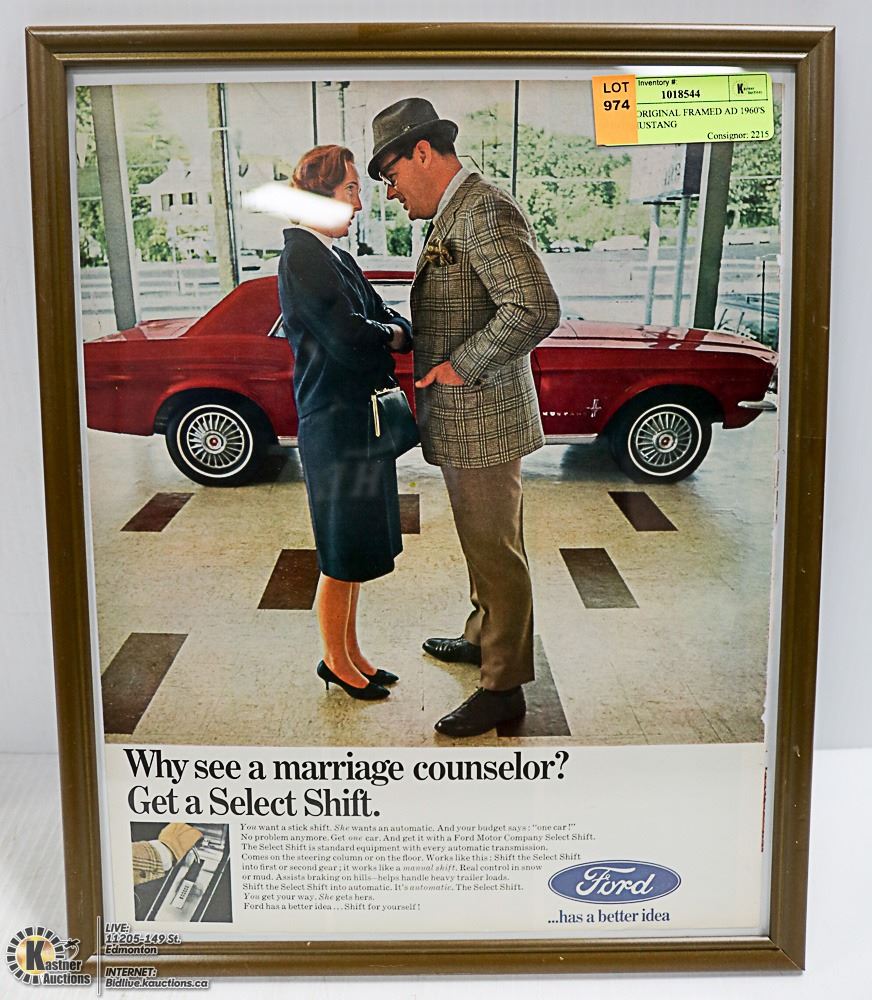 11 X 14 ORIGINAL FRAMED AD 1960'S FORD MUSTANG