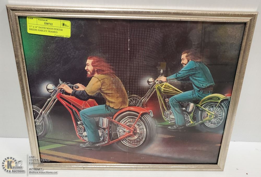 11  x 14  DAVID MANN POSTER BIKERS HARLEY FRAMED