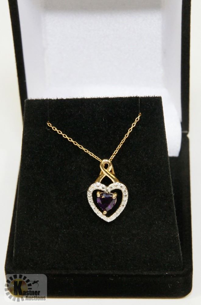 #112-NATURAL AMETHYST & CZ PENDANT NECKLACE