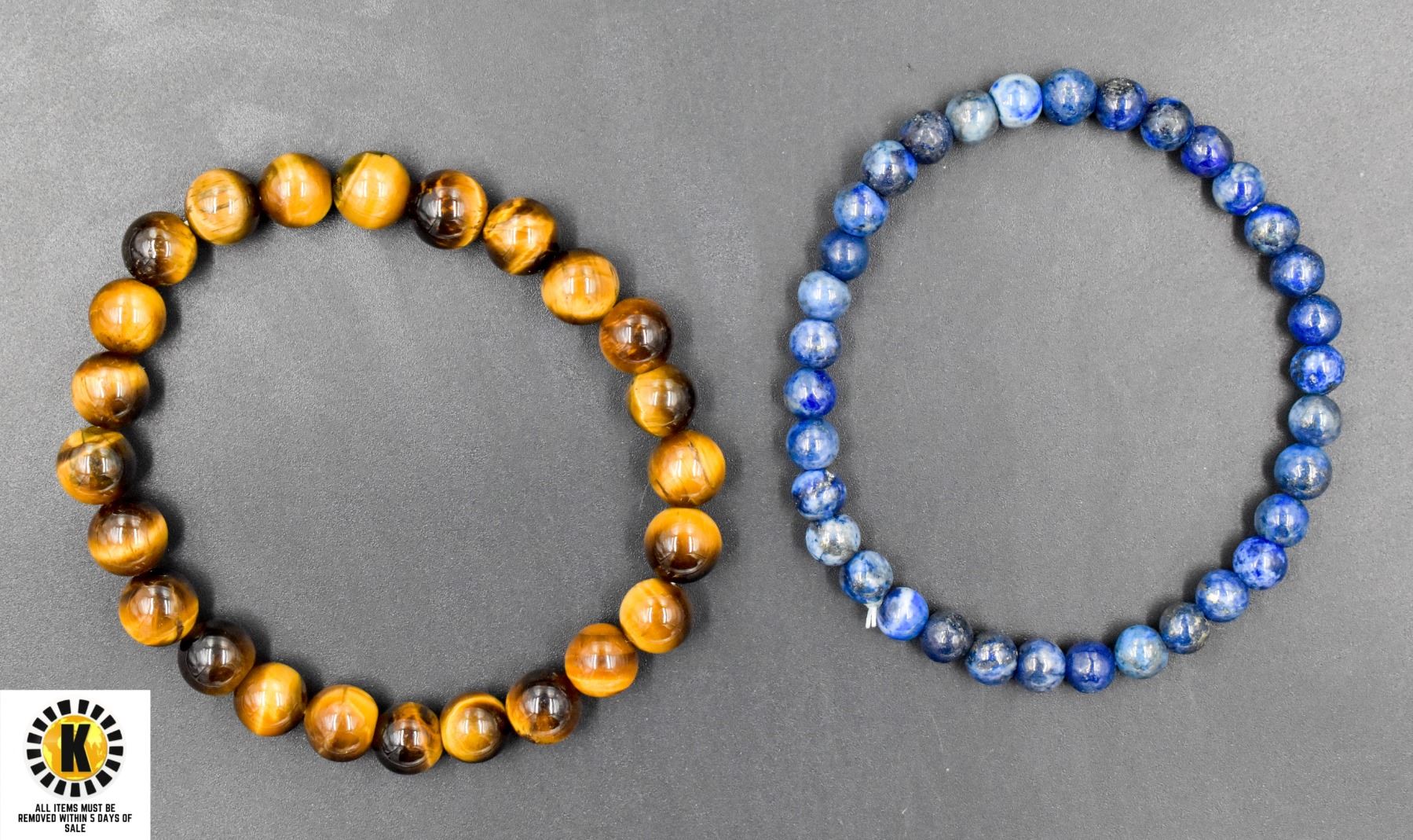 #112-NATURAL TIGER EYE, LAPIZ LAZULI BRACELET