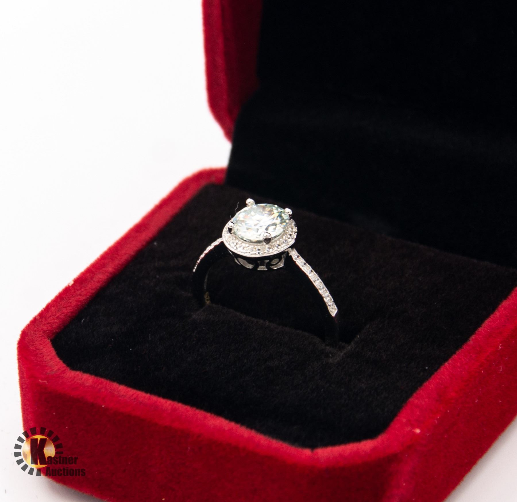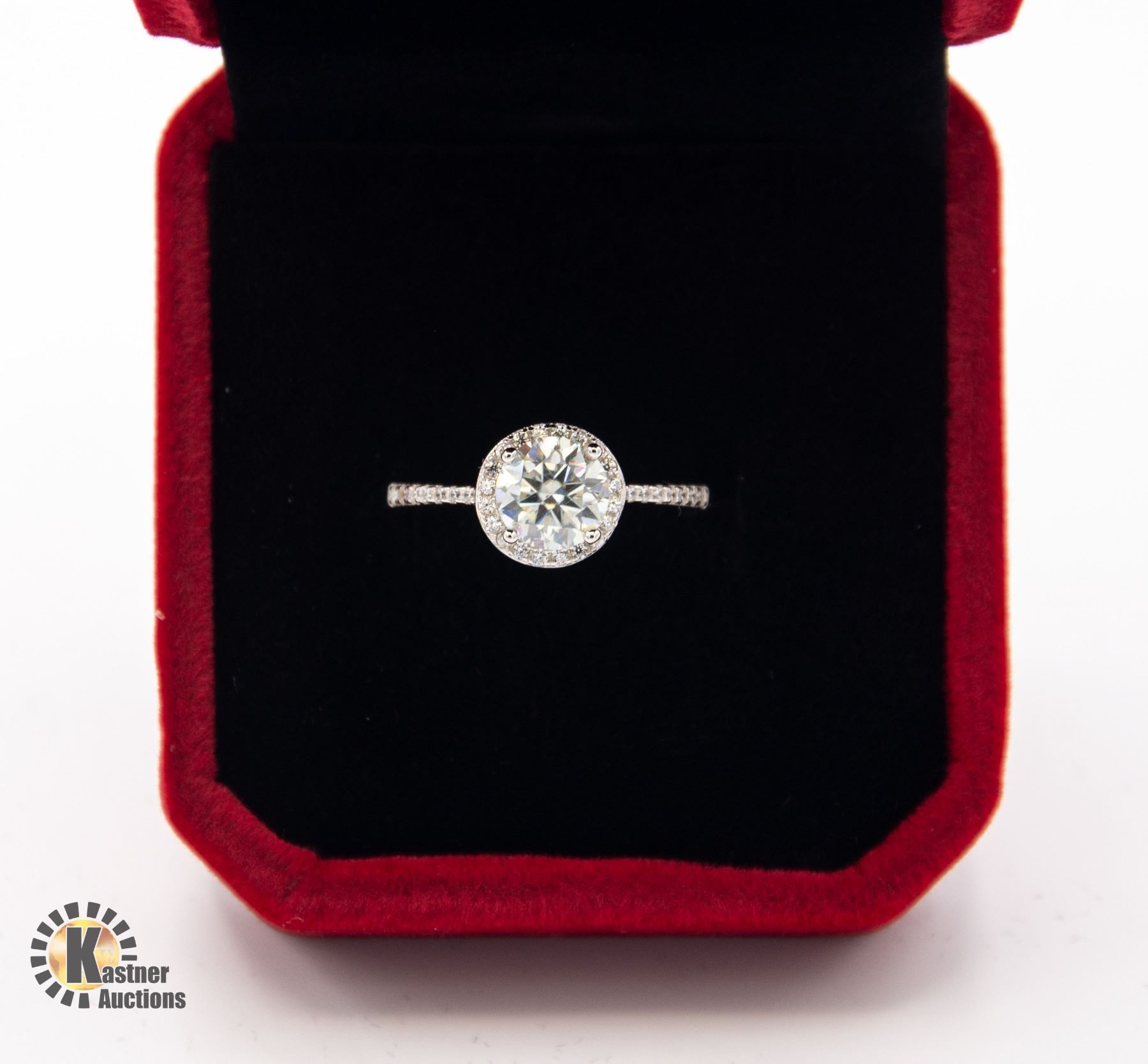 MOISSANITE STONE VVS D COLOR SET IN CENTER IN 925 SILVER RING SIZE ADJUSTABLE
