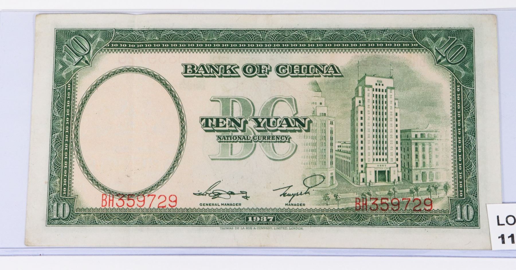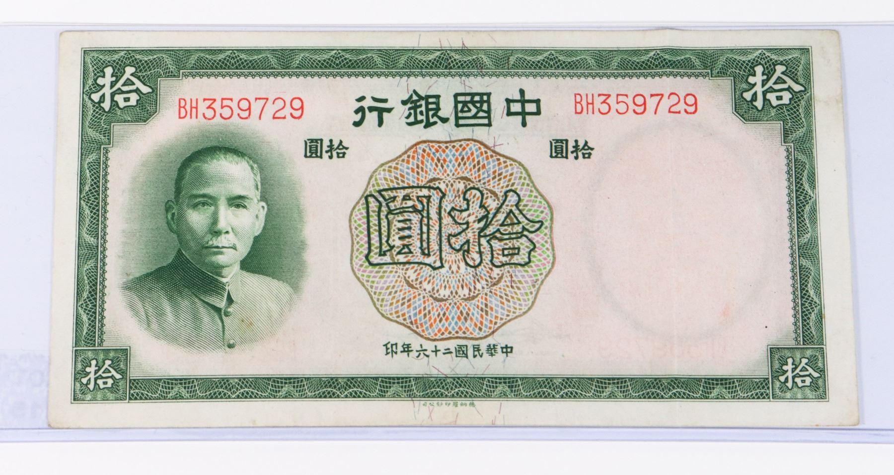 10 YUAN CENTRAL BANK OF CHINA THOMAS DE LA RITE & COMPANY LIMITED LONDON SUN YAT-SEN CHINA CHINESE CURRENCY PAPER MONEY BANK NOTE