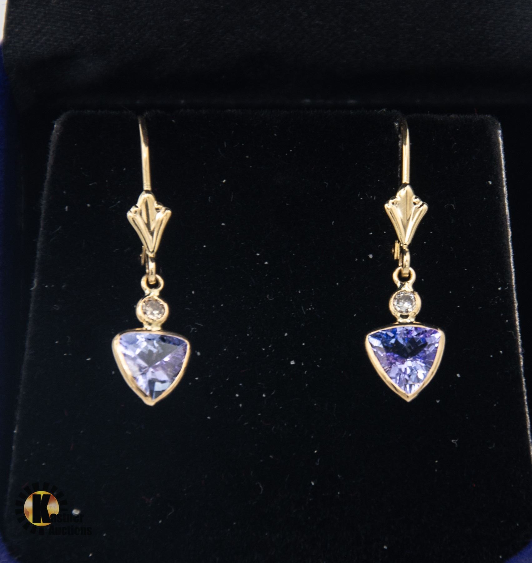 12 CT TW ROUND DIAMONDS WITH 2 TRIANGULAR TANZANITE STONES INTENSE BLUE/PURPLE IN COLOR WEIGHING A TOTAL 2.00 CT **ALL ITEMS MUST BE REMOVED BY 5PM SATURDAY, DECEMBER 14th 2024. ALL REMAINING ITEMS WILL BE SUBJECT TO A $6.00 PER DAY STORAGE CHARGE. ANY ITEMS REMAINING AFTER MONDAY, DECEMBER 30TH 2024 WILL BE CONSIDERED FORFEITED. NO REFUNDS WILL BE ISSUED FOR FORFEITED ITEMS. TO SCHEDULE A PICK UP APPOINTMENT CLICK HERE